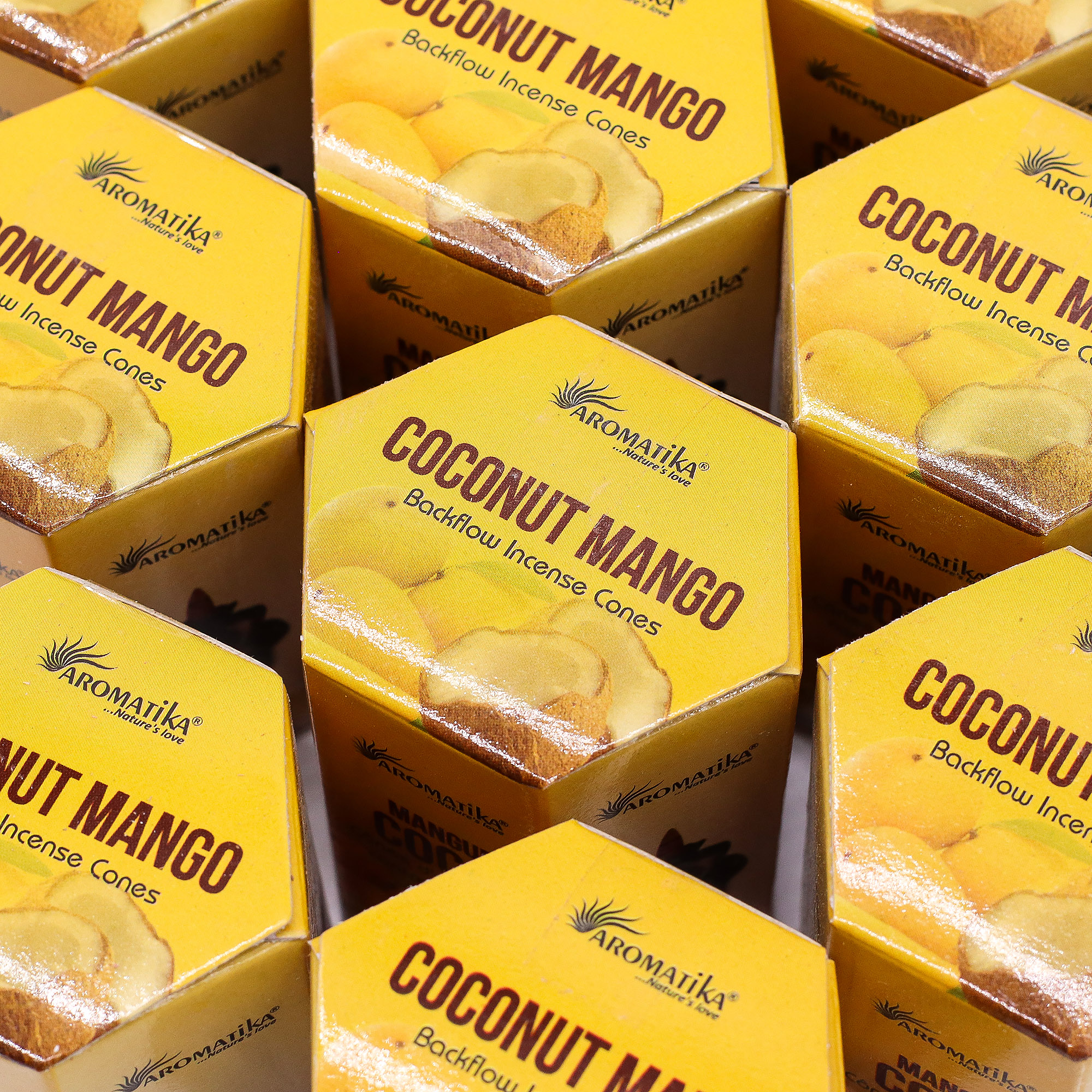 Our backflow incense cones combine the sweet essence of mango with the creamy allure of coconut. This unique fusion creates an exotic and delightful aroma that evokes thoughts of a tropical escape.