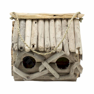Overall, the Driftwood Birdbox - Double is a beautiful and functional addition to any garden or outdoor space. Its natural and sustainable design, combined with its practical functionality, makes it a perfect choice for bird lovers and nature enthusiasts alike.