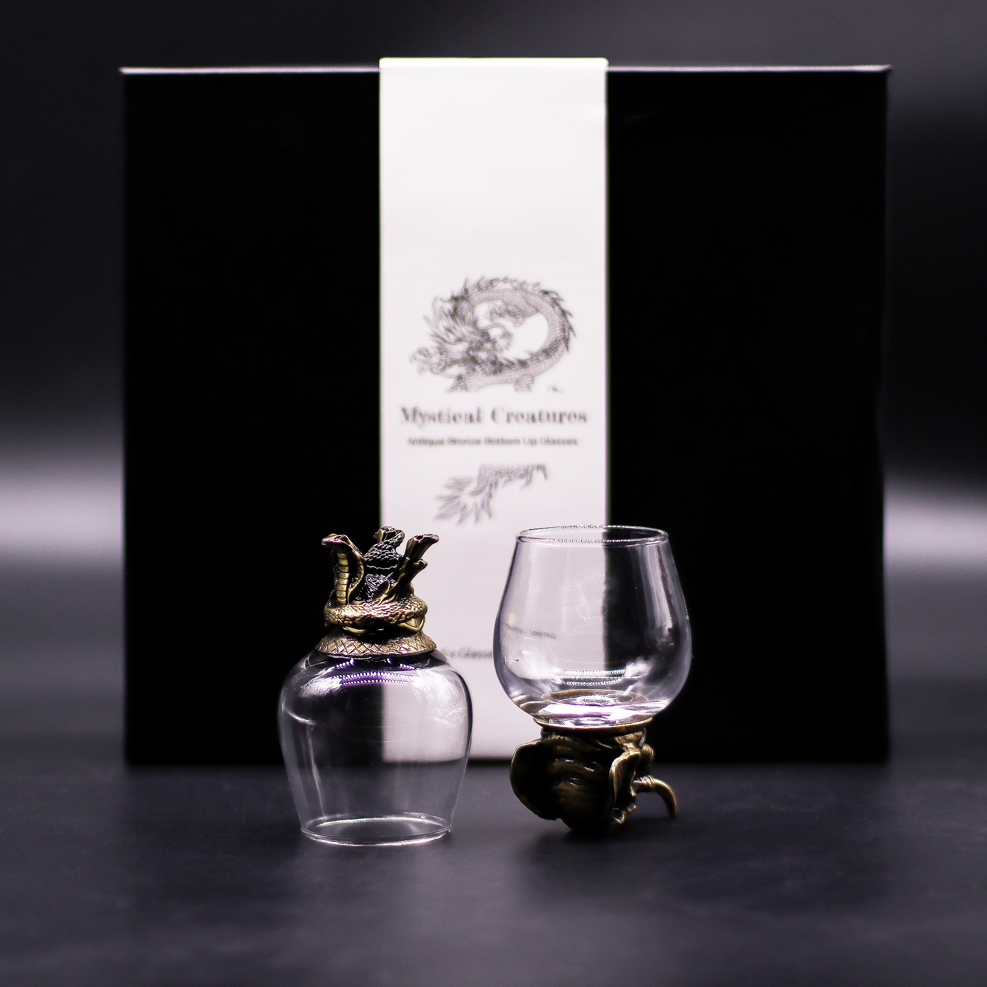 Each of the six clear glasses has highly detailed head of a different mystical creature. The 100ml capacity provides greater versatility than a standard shot glass, making them perfect for generous shots, specialty liqueurs, or measured cocktails, thereby appealing to a broader customer base.