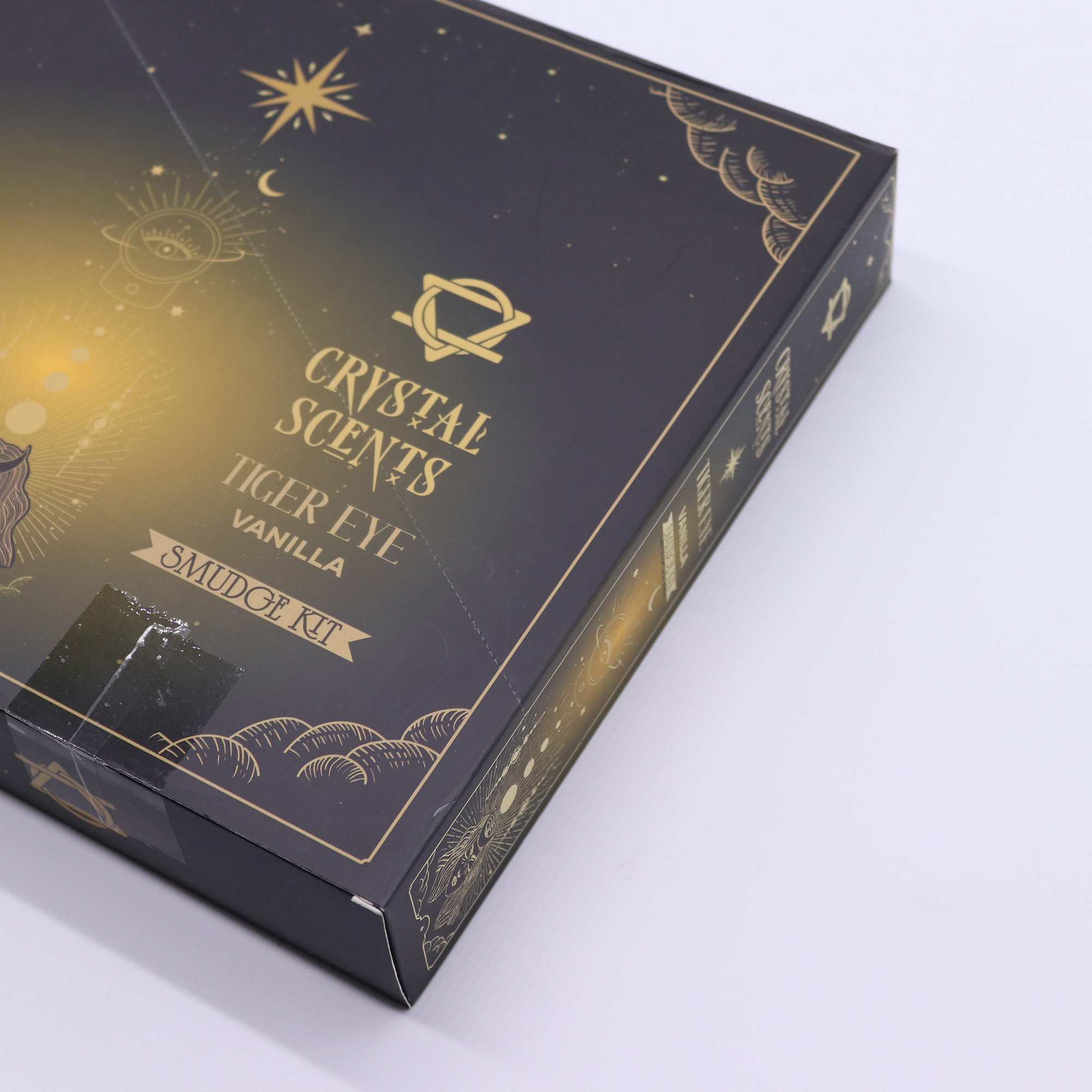 Showcased in striking amber-and-gold celestial packaging, this collection stands out beautifully on shelves and appeals to shoppers seeking both enchanting fragrance and crystal energy.