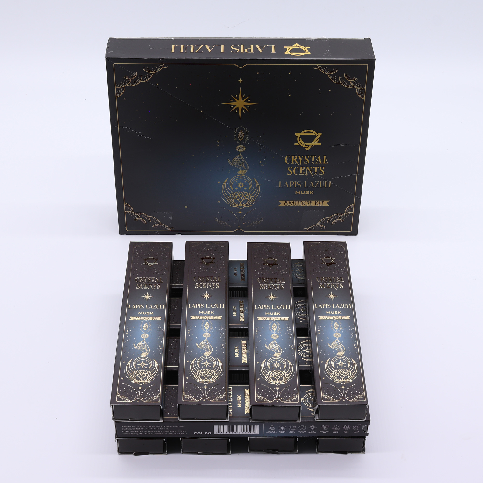 Support intuition, wisdom, and spiritual clarity with our Lapis Crystal Scents Smudge Incense. Each retail-ready pack includes 10 handcrafted musk-scented smudge sticks, infused with a deep, earthy aroma that calms and centres any space.