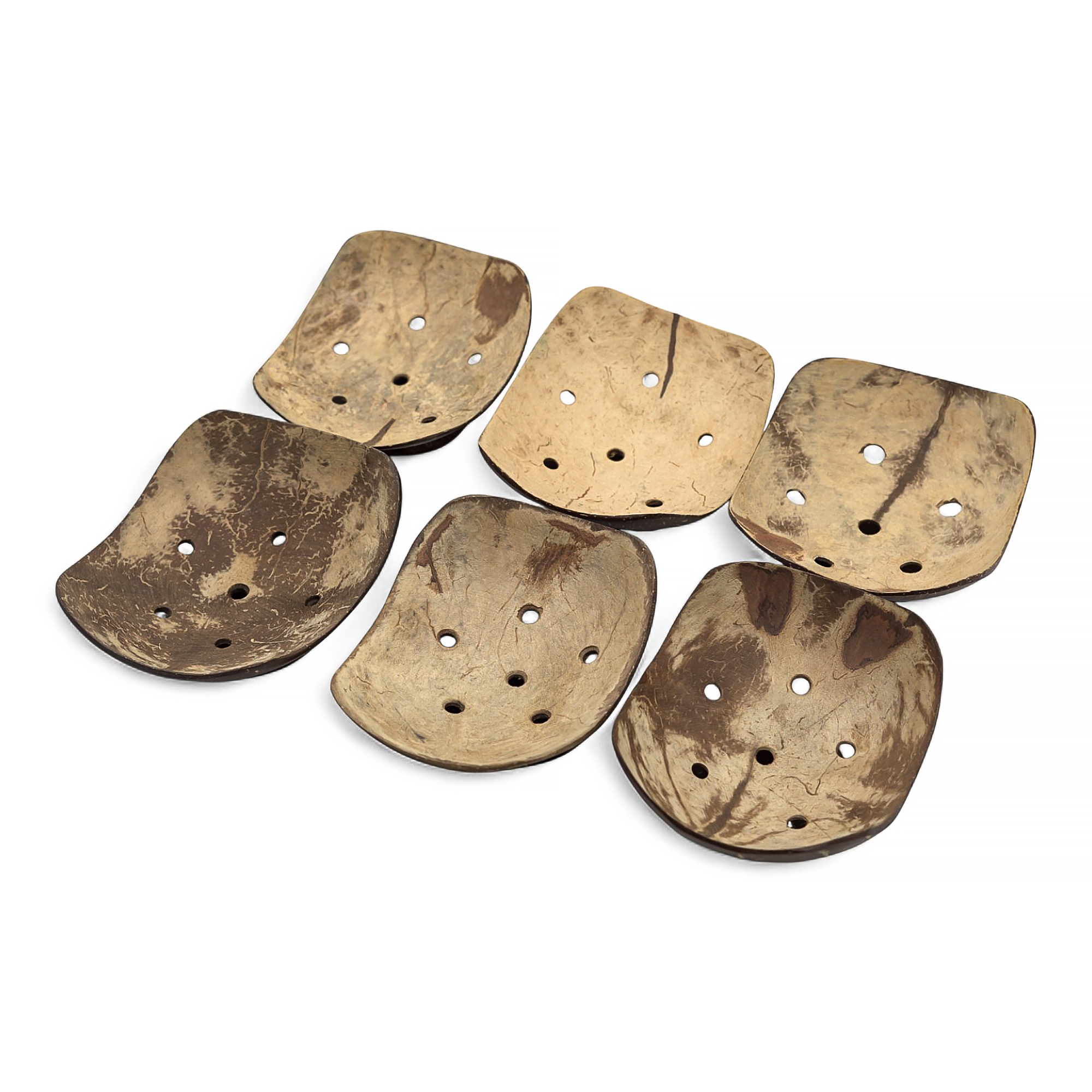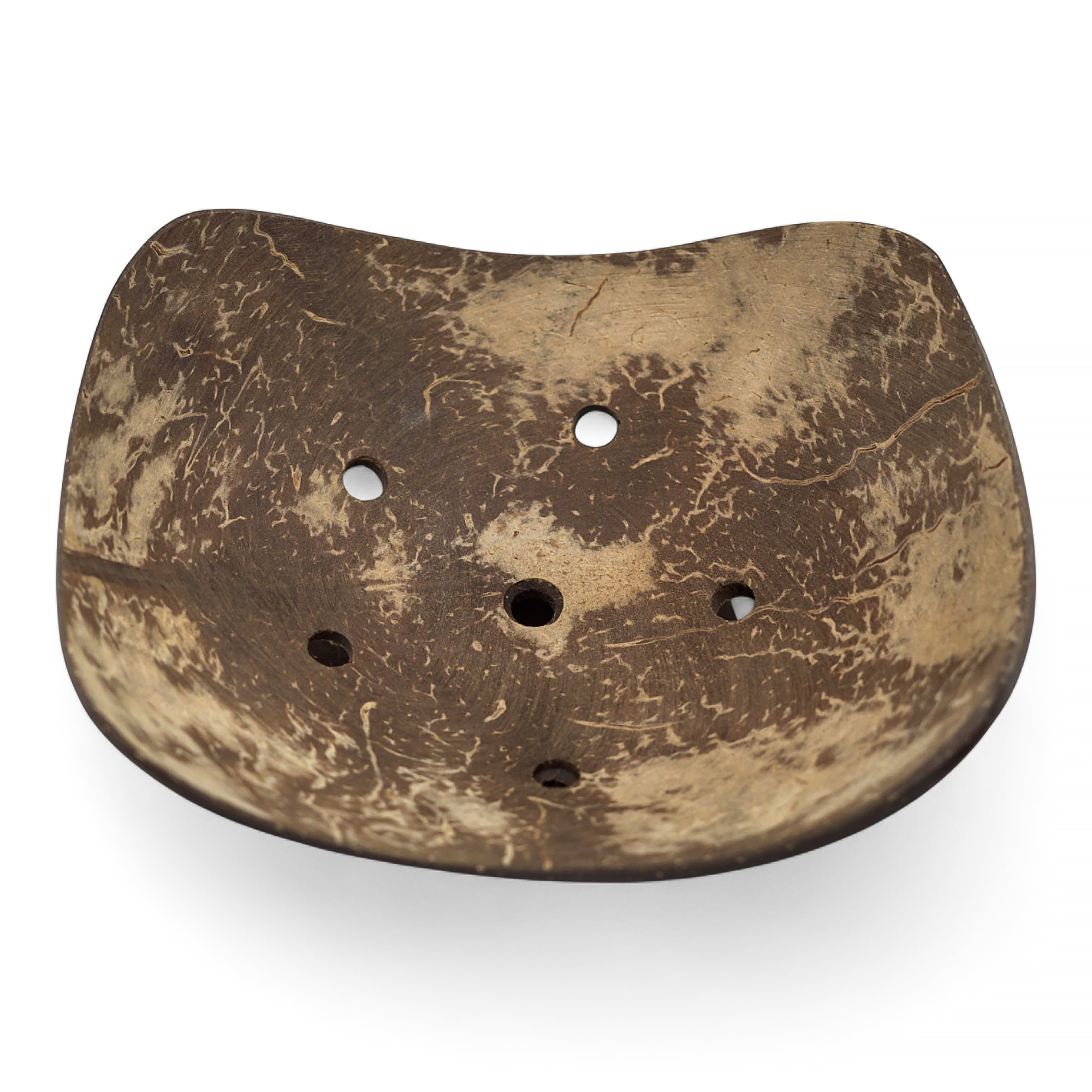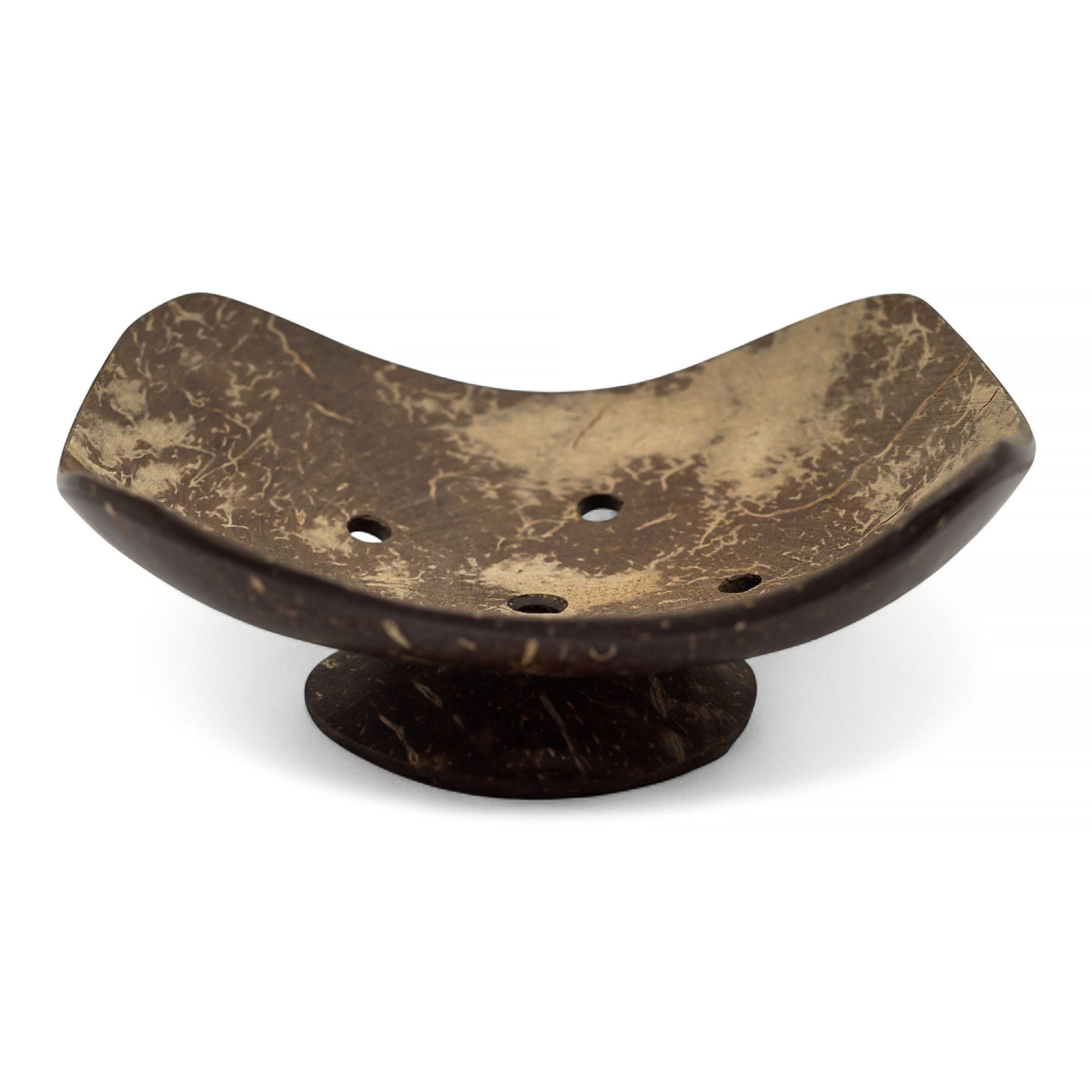 This Hand made coconut soap dish from Indonesia keeps bars high and dry. Carved from reclaimed coconut shell and hand-polished to preserve the shell’s natural colour and grain. Five drainage holes and a slight curve let water run off fast, while the raised base improves airflow.
