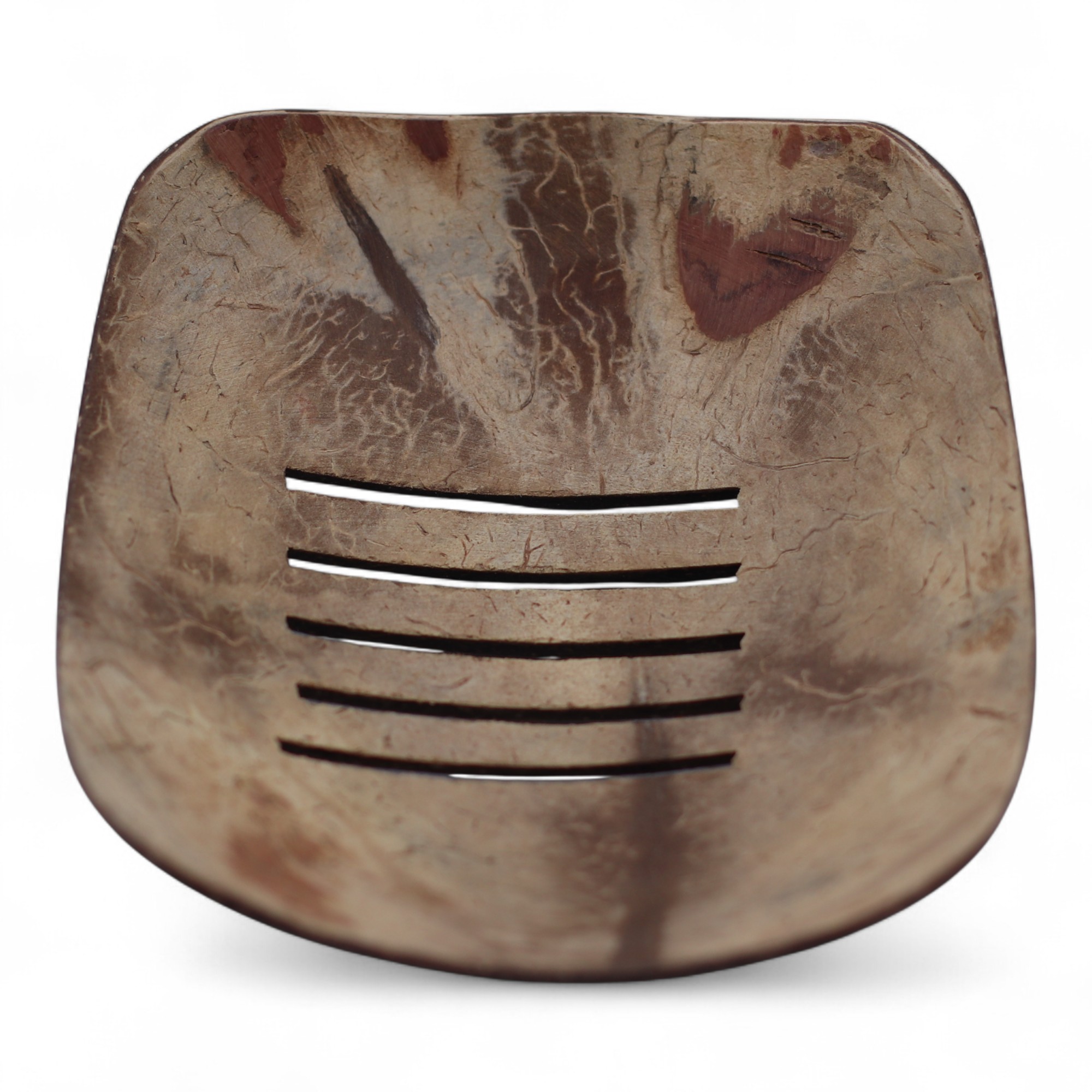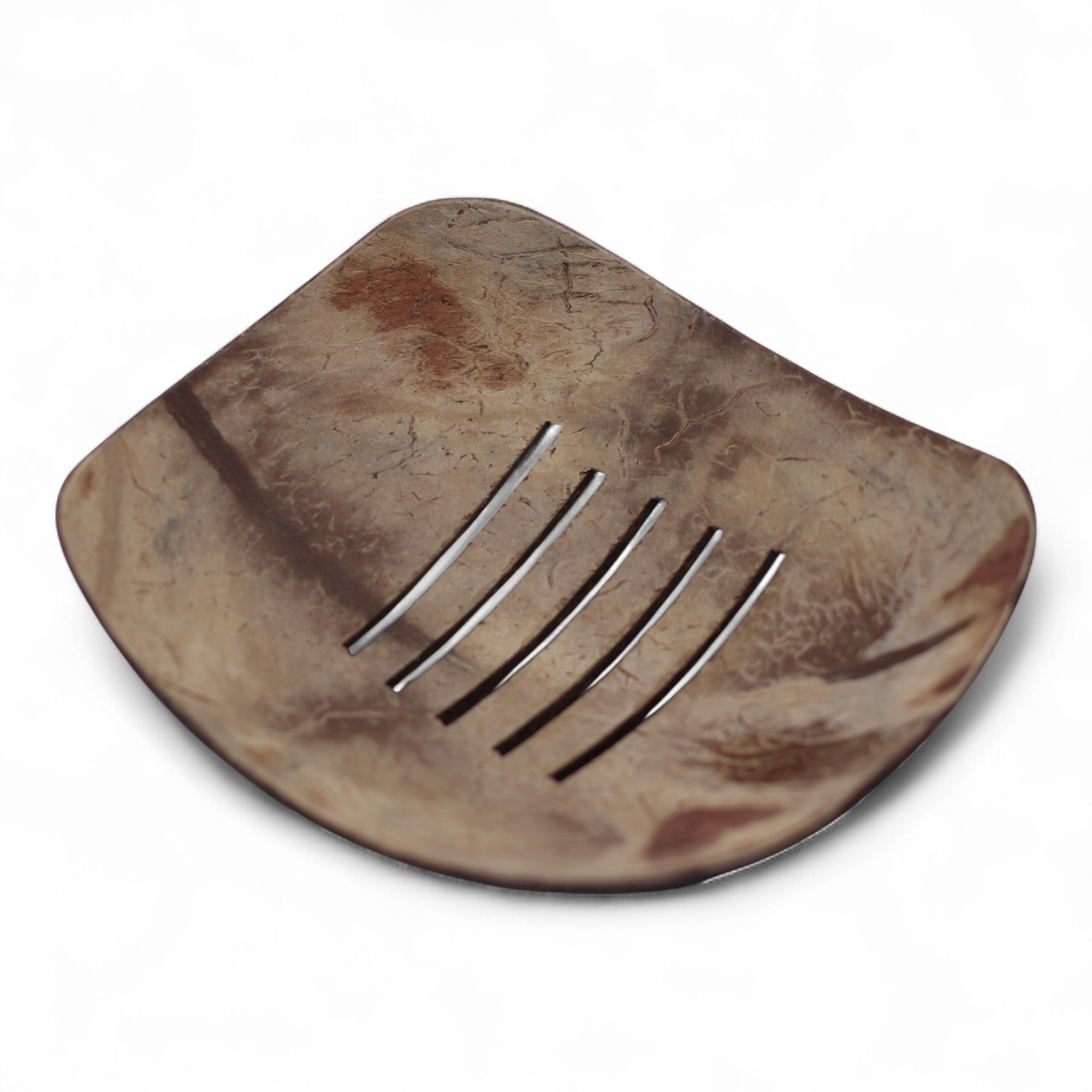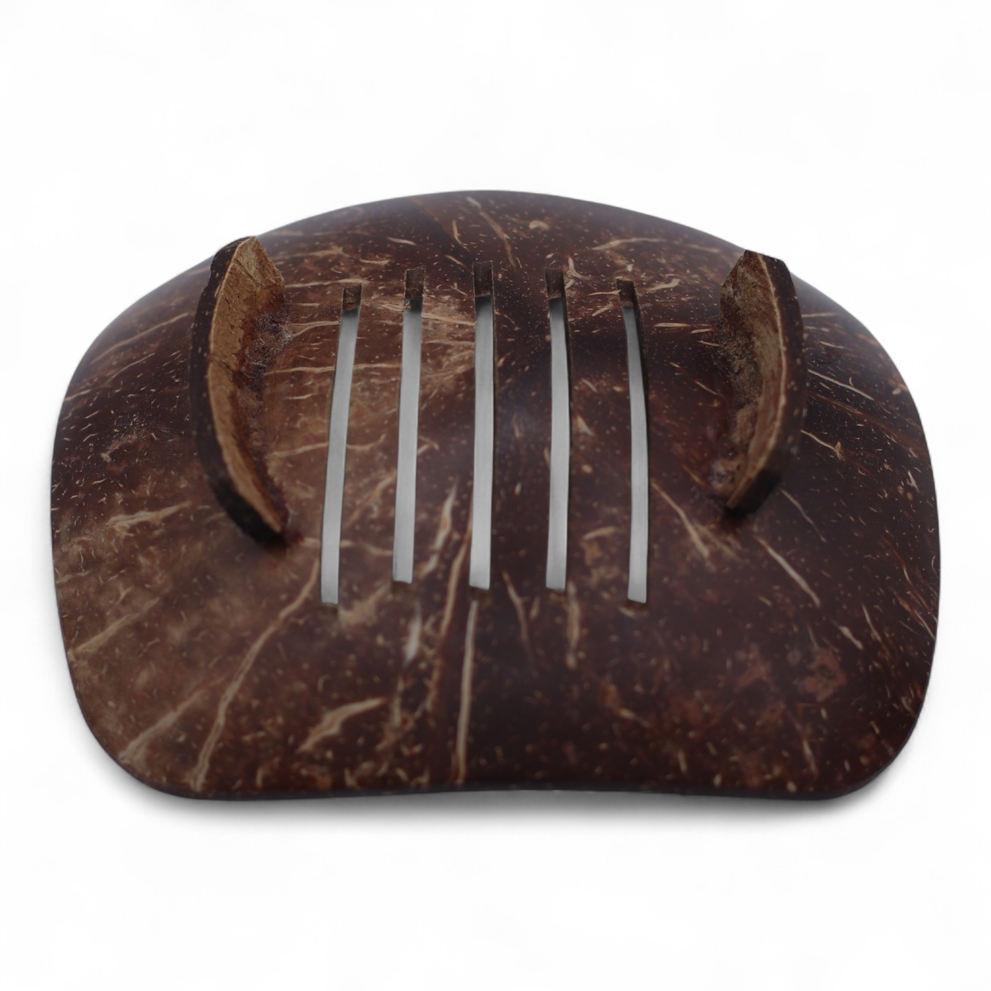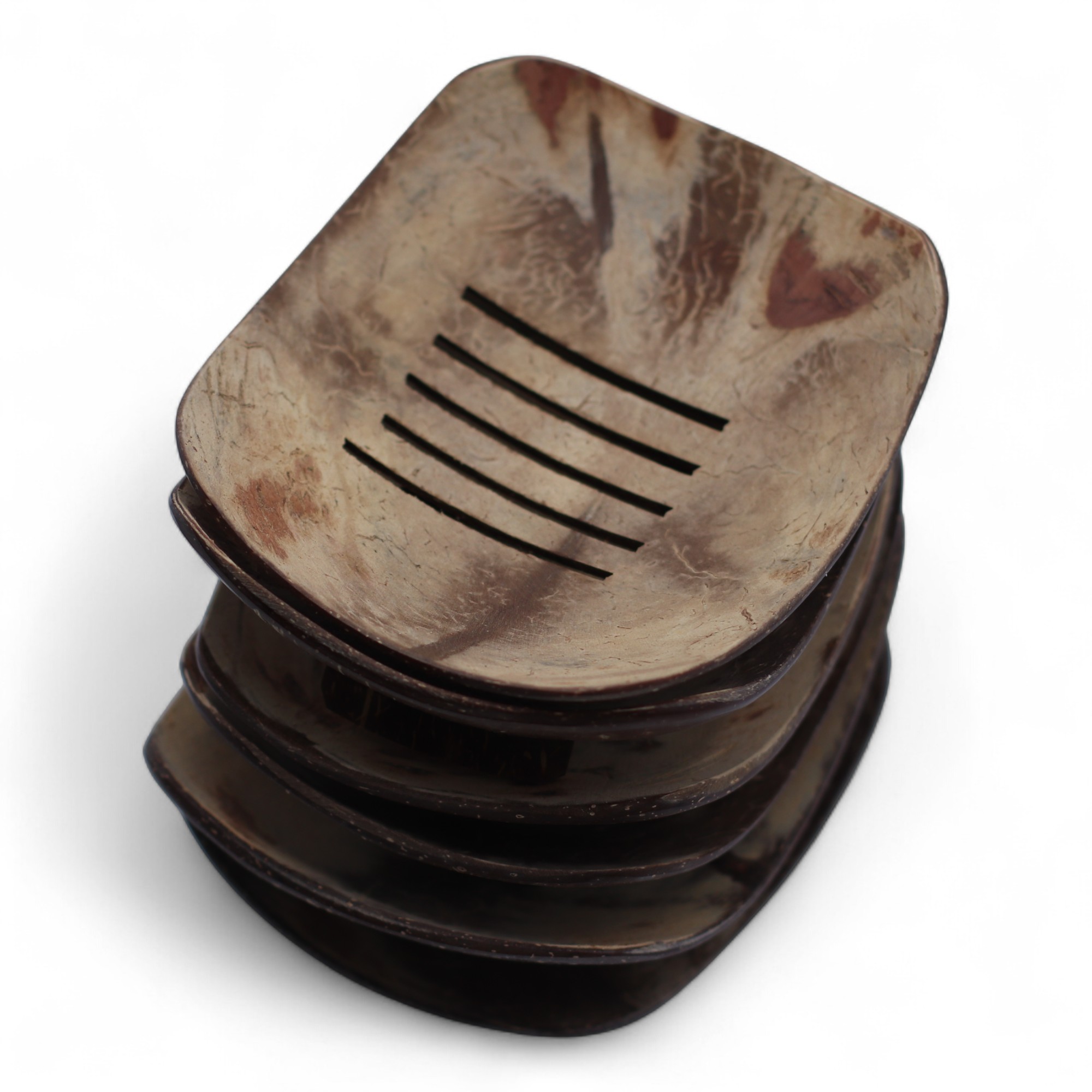 coconut soap dish from Indonesia pairs natural style with everyday function. Made from reclaimed coconut shell and hand-polished to keep the shell’s organic colour and grain.