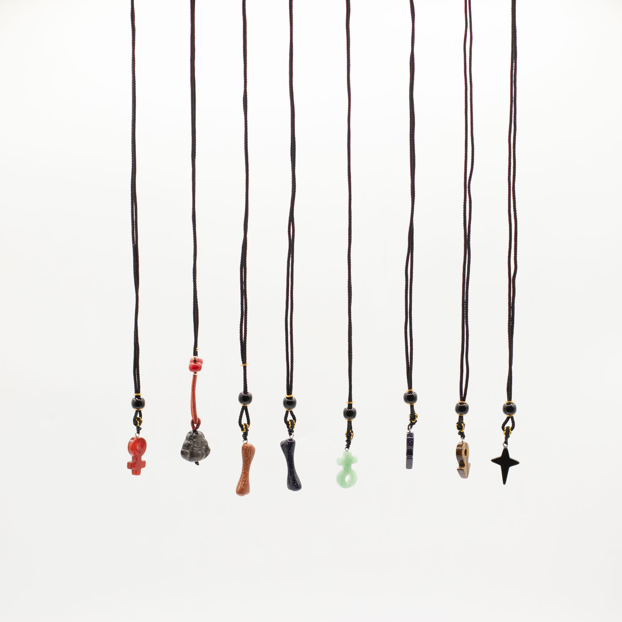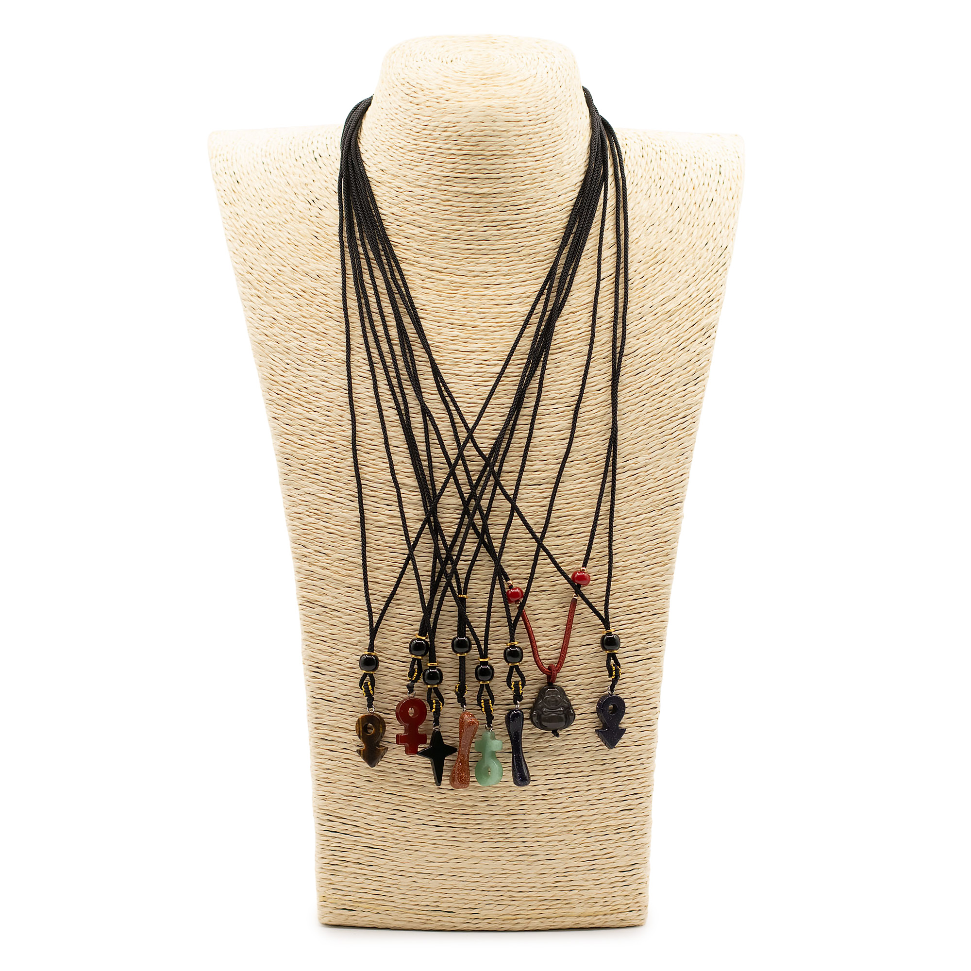 Every piece is presented on an adjustable cord necklace with decorative bead accents, creating a ready-to-sell accessory with strong shelf appeal.