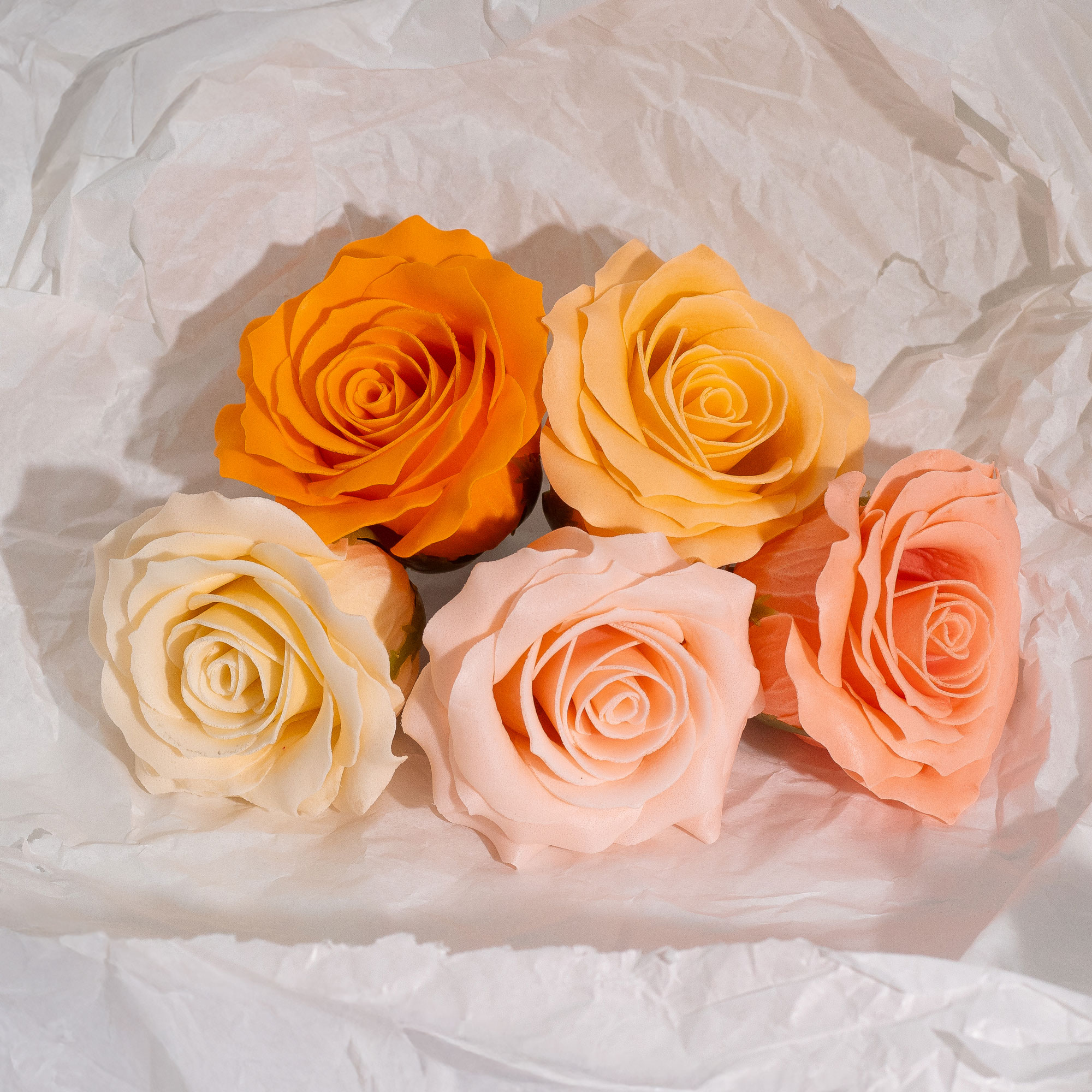 Warm and softly elegant, these Peach Blush Soap Roses add a gentle, inviting tone to any display. Each box contains 25 roses in graduated peach hues, designed to echo the look of real blooms with a light, clean soap fragrance. Well suited to seasonal baskets, pampering hampers, or bespoke soap bouquets, their warm colouring works beautifully for spring and summer merchandising. They can be used purely decoratively or as a gentle hand soap, offering both visual appeal and everyday function. With their distinctive colouring and balanced design, Peach Blush Soap Roses give retailers a versatile, gift-ready option that encourages creative displays and attracts customers seeking something both beautiful and usable.