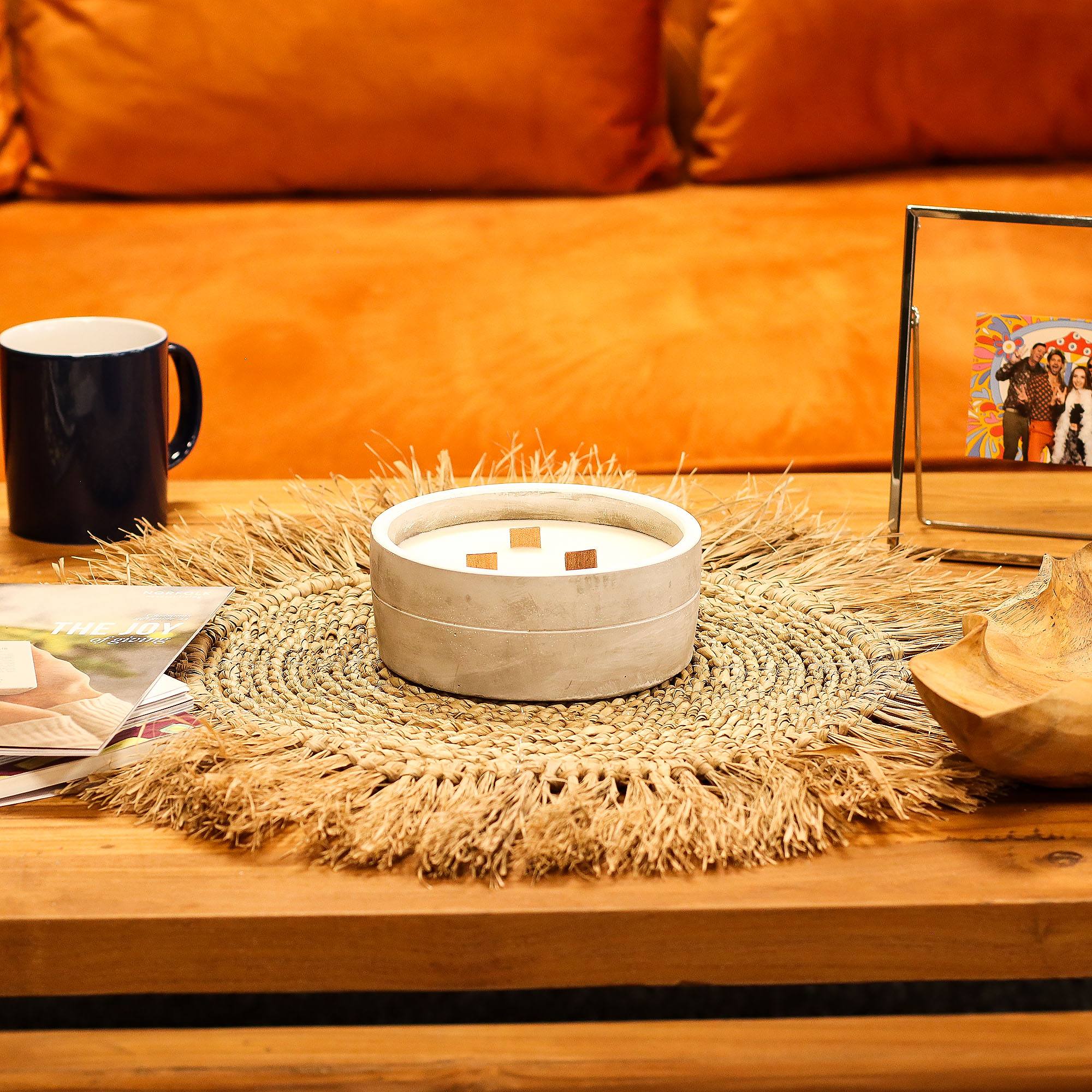 Felt pads have been added to the bottom to prevent the scratching of surfaces. The natural wooden wick creates the soothing sound of a crackling fire! The design of the concrete pot allows reusing it to integrate it into your customer's decor once the candle is consumed such as a plant pot.