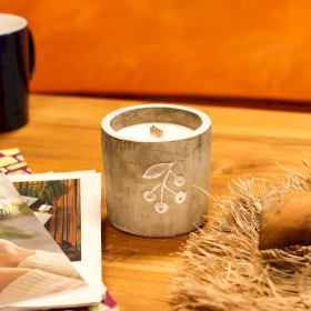 Felt pads have been added to the bottom to prevent the scratching of surfaces. The natural wooden wick creates the soothing sound of a crackling fire! The design of the concrete pot allows reusing it to integrate it into your customer's decor once the candle is consumed such as a plant pot.
