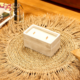 Felt pads have been added to the bottom to prevent the scratching of surfaces. The natural wooden wick creates the soothing sound of a crackling fire! The design of the concrete pot allows reusing it to integrate it into your customer's decor once the candle is consumed such as a plant pot.