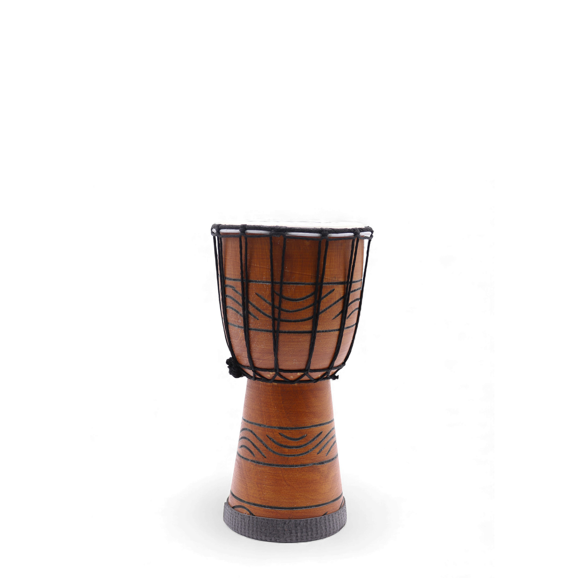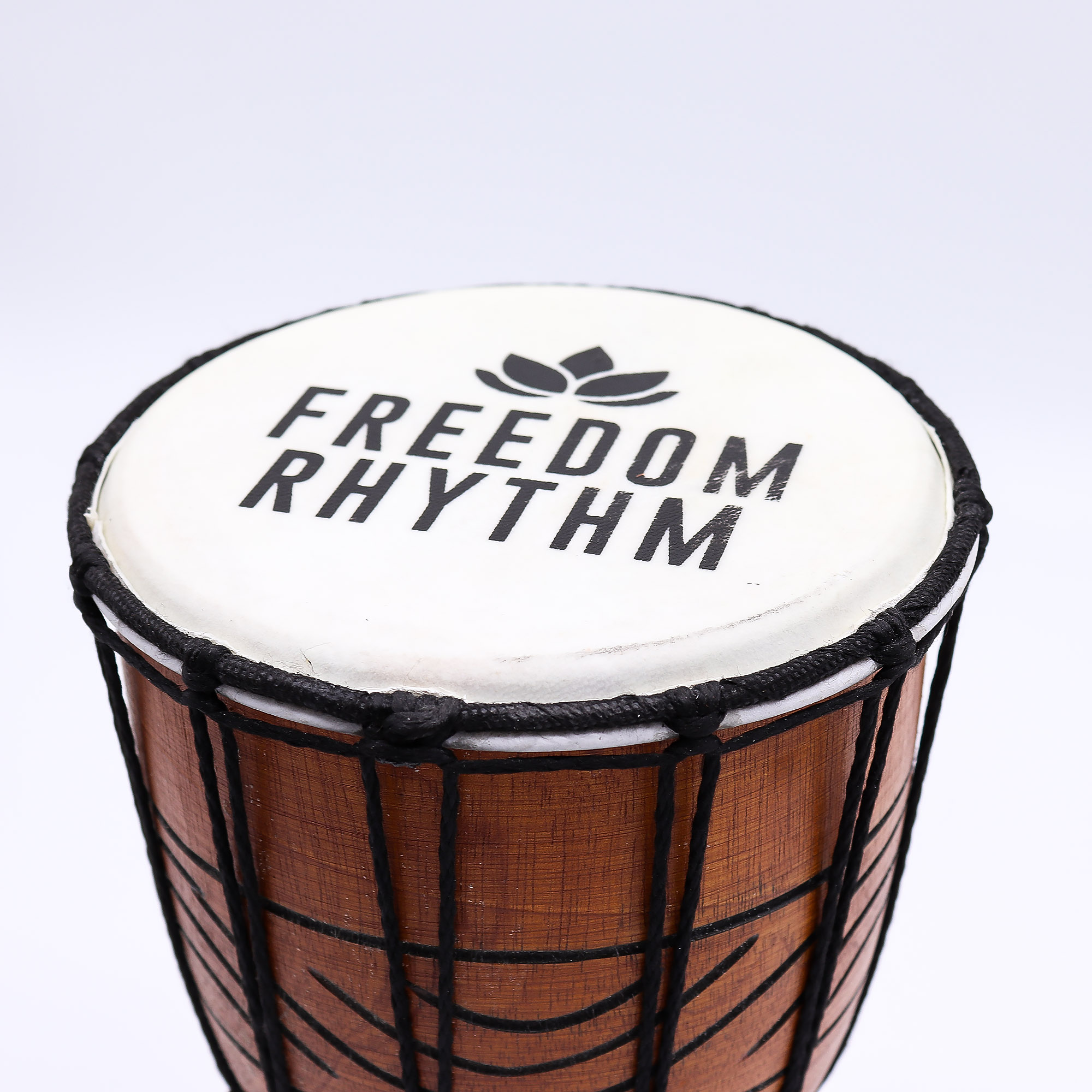 Freedom Rhythm brings a bright, uplifting sound in a compact 30cm size. Hand-carved in Indonesia and fitted with a natural goat-skin head, it responds with crisp slaps and warm bass tones, making it ideal for beginners, group workshops, or anyone who enjoys rhythm as a way to unwind. Rope tuning keeps the head tension consistent, and the carved wave pattern gives the drum a clean, modern look while still nodding to traditional craftsmanship. Light, portable, and easy to play—it's a simple way to bring music into any space.