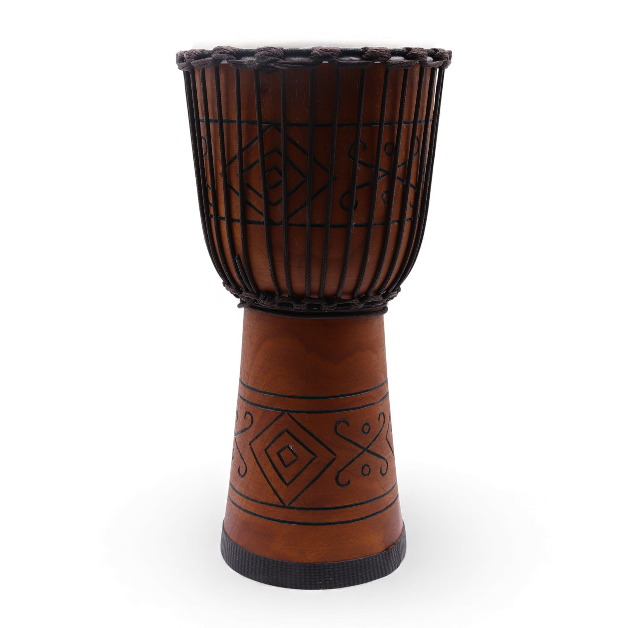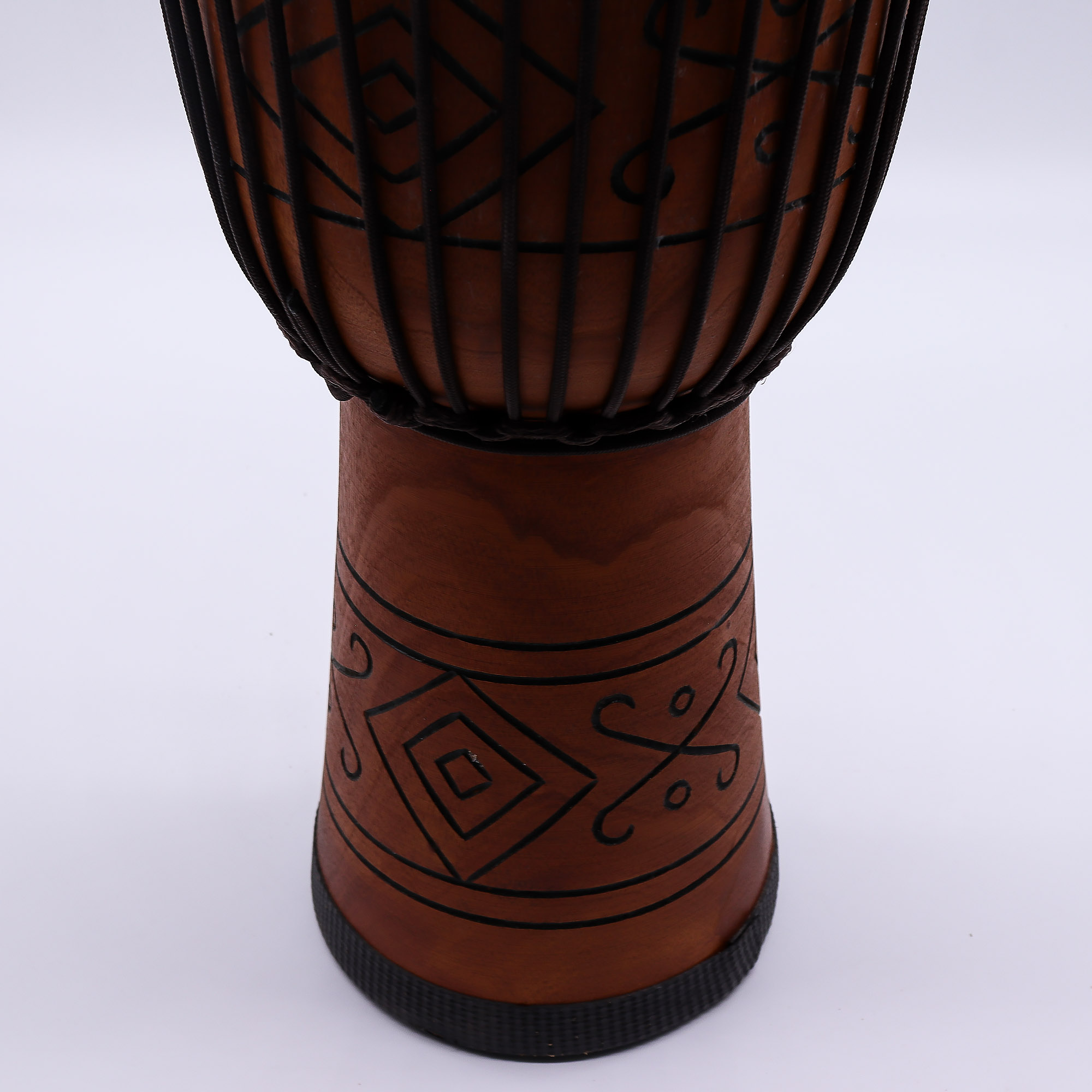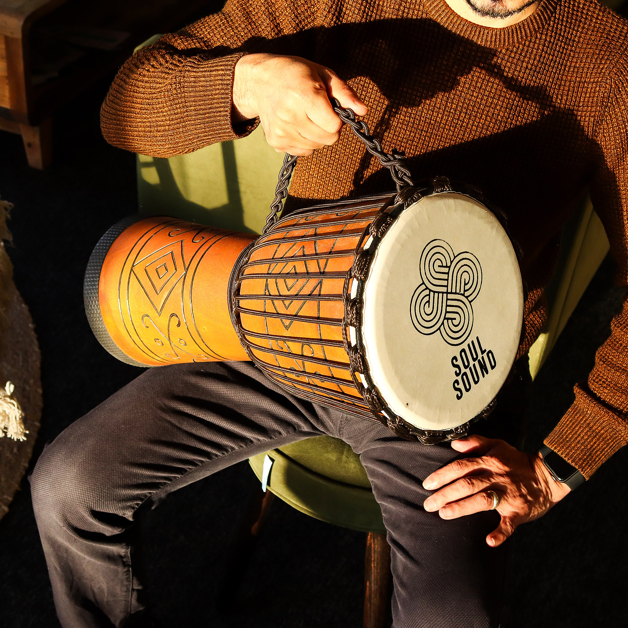 The Large Pro Djembe Drum – Soul Sound is built for players who want depth, volume, and presence. At 50cm tall with a 22cm head, it produces a bold, resonant bass and sharp, clear slaps that carry beautifully in group sessions, performances, and workshops. Hand-carved in Indonesia and fitted with a natural goat-skin head, it responds quickly and feels solid under the hands. The rope tuning keeps the tension steady, while the carved geometric patterns give it a traditional look that still feels clean and modern. It’s powerful, reliable, and ready for anyone who wants to take their rhythm a step further.