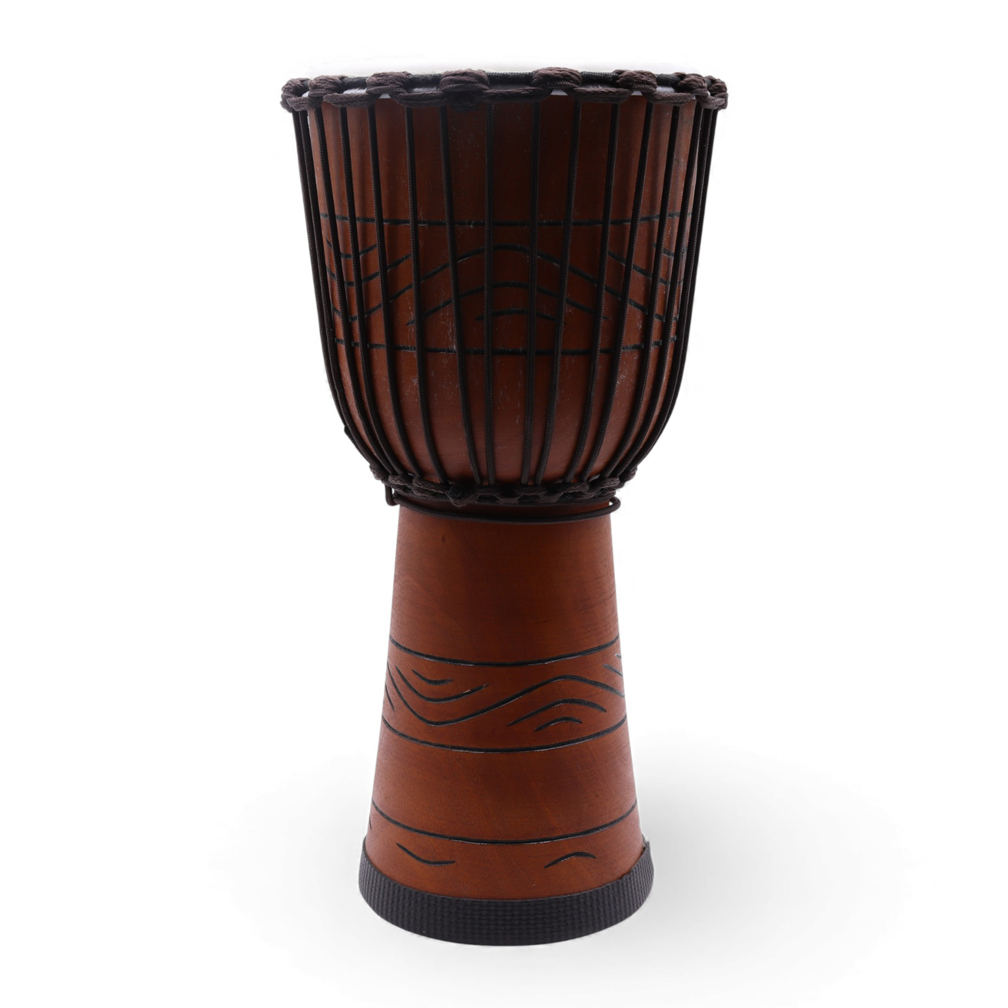 Freedom Rhythm is built for players who want power, volume, and a rich, resonant sound. At 50cm tall with a 22cm head, it delivers deep bass tones, crisp highs, and a lively response that works brilliantly for workshops, drum circles, performances, or home practice. Hand-carved in Indonesia and fitted with a natural goat-skin head, it feels solid and expressive under the hands. The rope tuning keeps the head tension stable, while the flowing carved wave design gives the drum a clean, modern look with a traditional edge. Reliable, bold, and ready for serious rhythm.