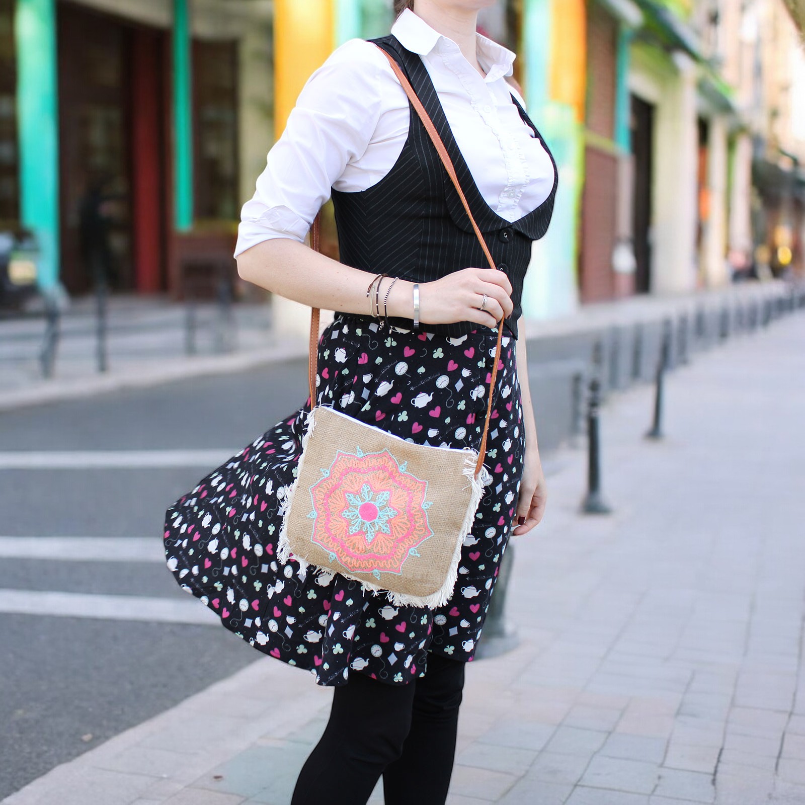 Lightweight and easy to wear, each bag is made from sustainable, soft-washed jute and finished with beautiful hand-stitched or on-trend printed designs.