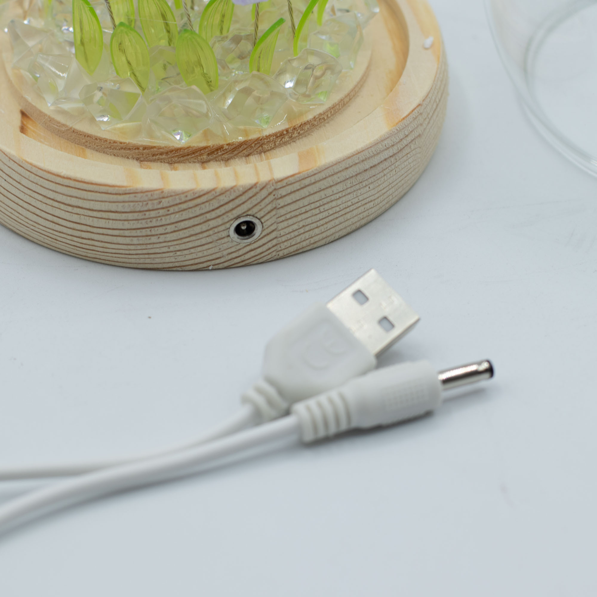 This model is powered by a USB connection, providing a consistent and reliable light source that transforms the tulips into a soft, ambient glow. It is a perfect addition to a bedside table, home office, or any space that needs a permanent touch of floral charm without the need for watering. The intricate details of the petals and the warm illumination make it a standout gift and a soothing accent for any interior.