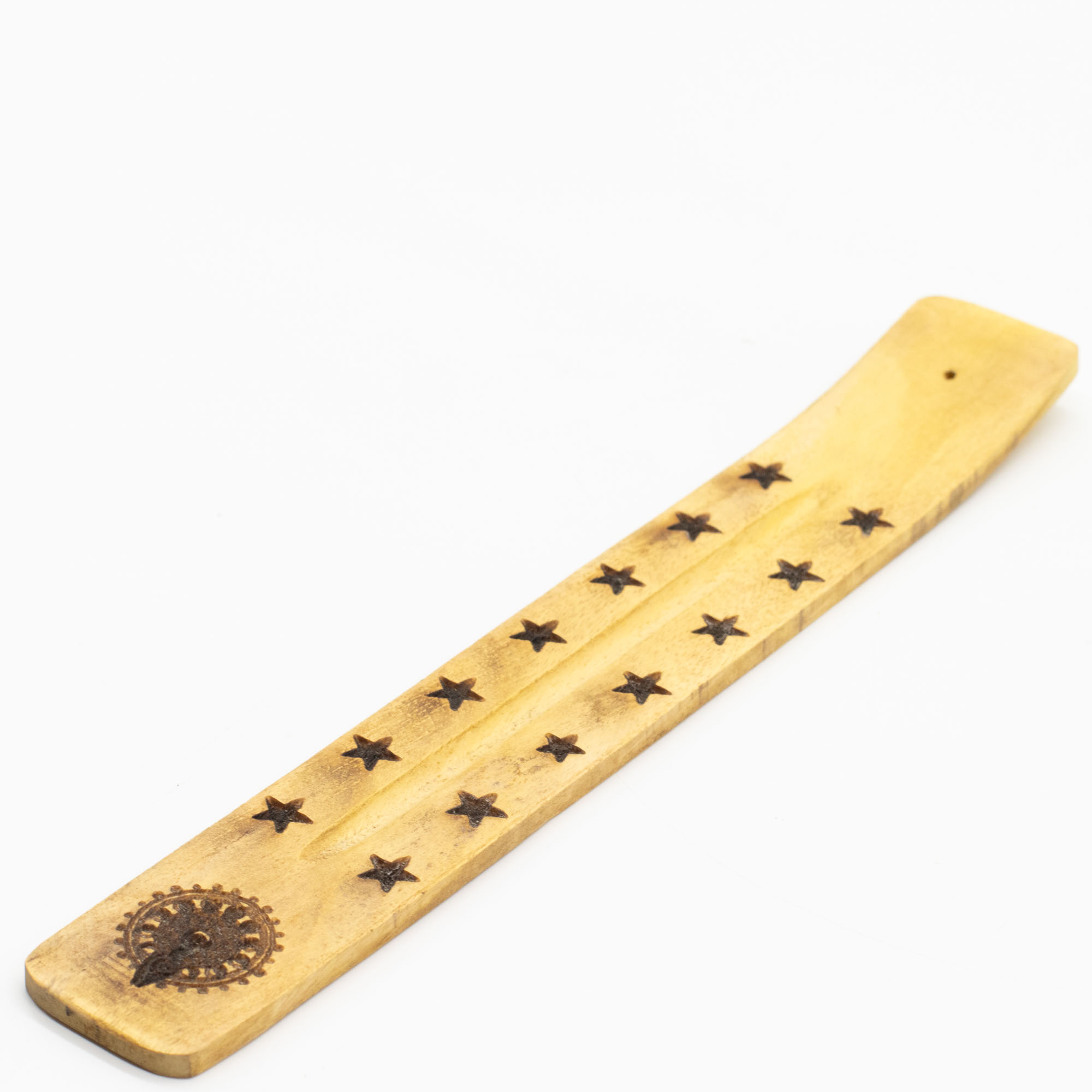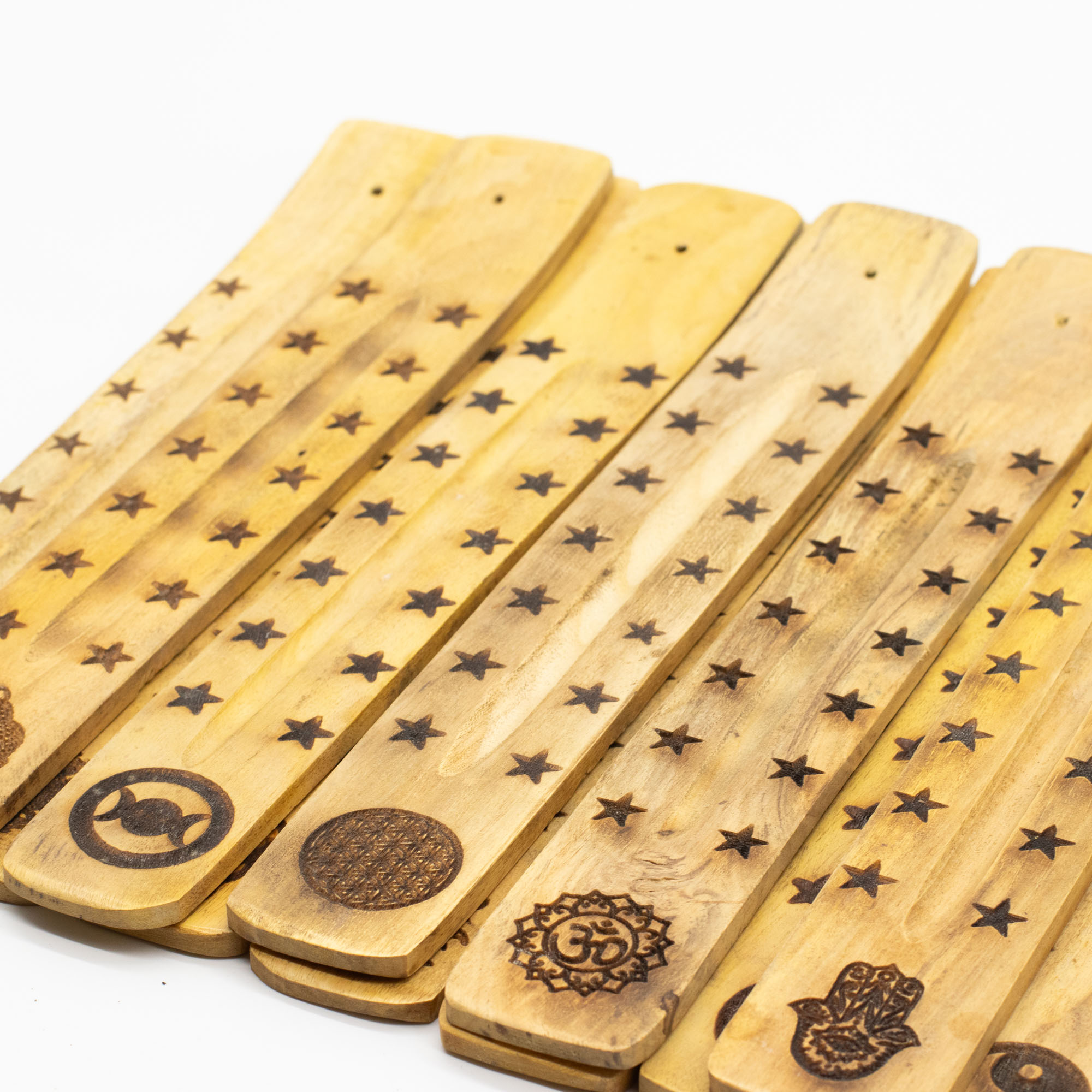 Each ashcatcher is designed for incense sticks, featuring a central groove and a pre-drilled hole to catch ash cleanly and keep burning tidy. Slim and easy to display, they work well individually or as a curated selection that invites customers to choose symbols that resonate with them.