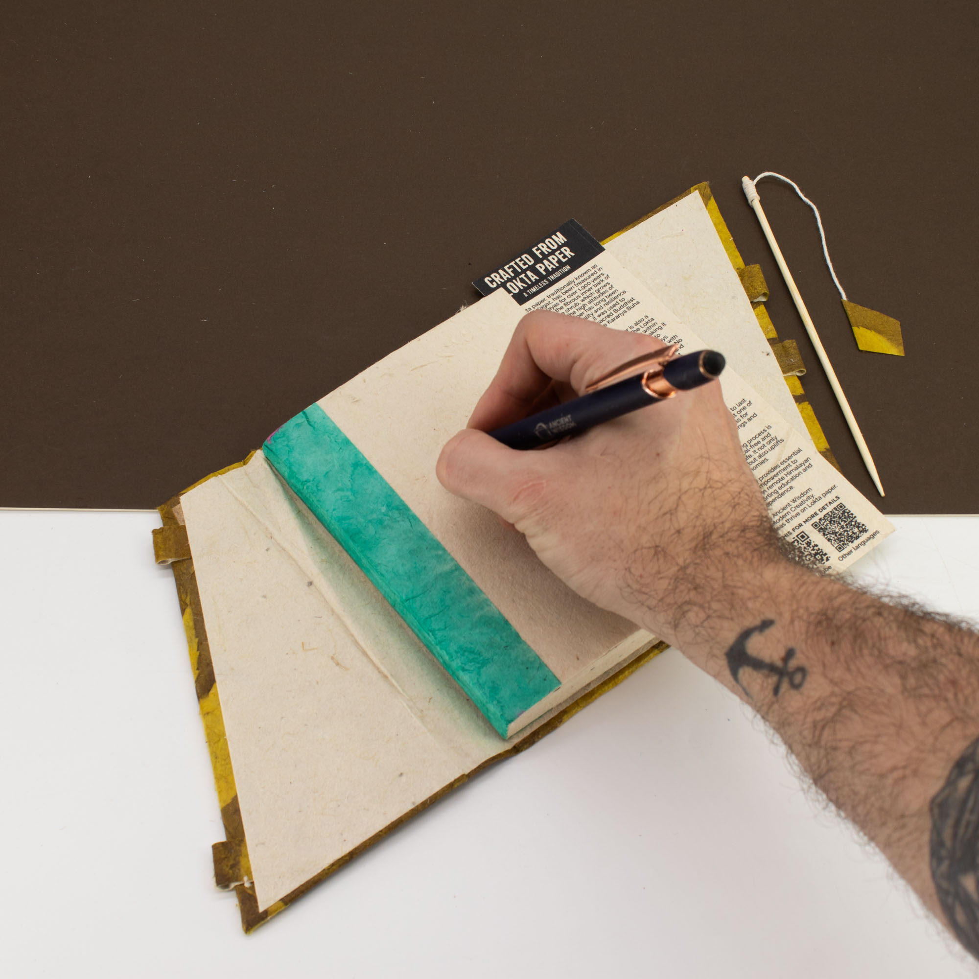 Inside, you’ll find 45 leaves of unlined, cream-colored paper. Lokta paper is highly valued for its natural texture and extreme durability, being resistant to both tearing and aging.