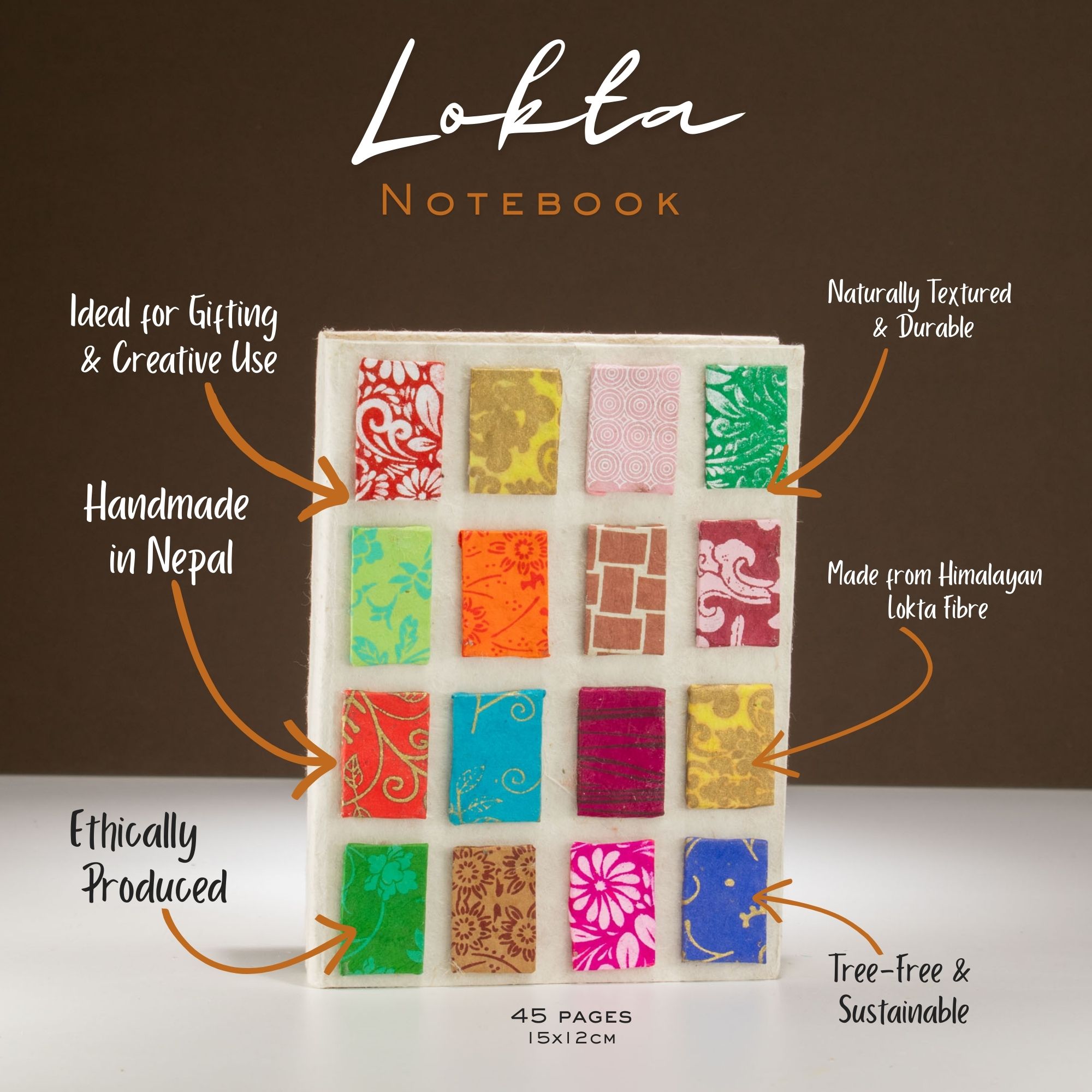 The Medium Lokta Mini Tiles Notebook in Natural is a charming, tactile stationery piece that highlights the beauty of traditional Himalayan paper-making. Measuring 15x12cm, this compact notebook is perfectly sized for daily notes, sketching, or as a unique gift item.