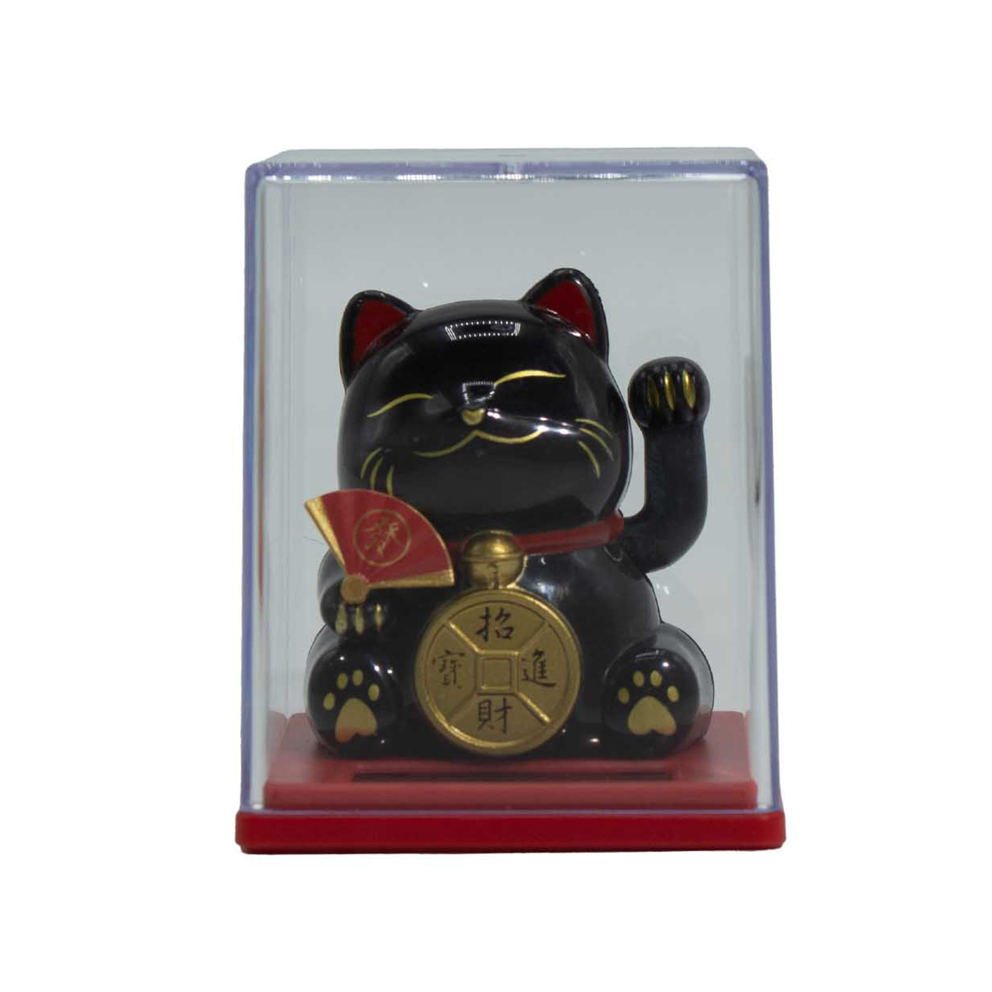 Representing health and protection, this black solar-powered waving cat is a practical yet meaningful décor piece. It comes housed in a fixed, non-removable case that protects the moving arm and maintains a clean presentation.
