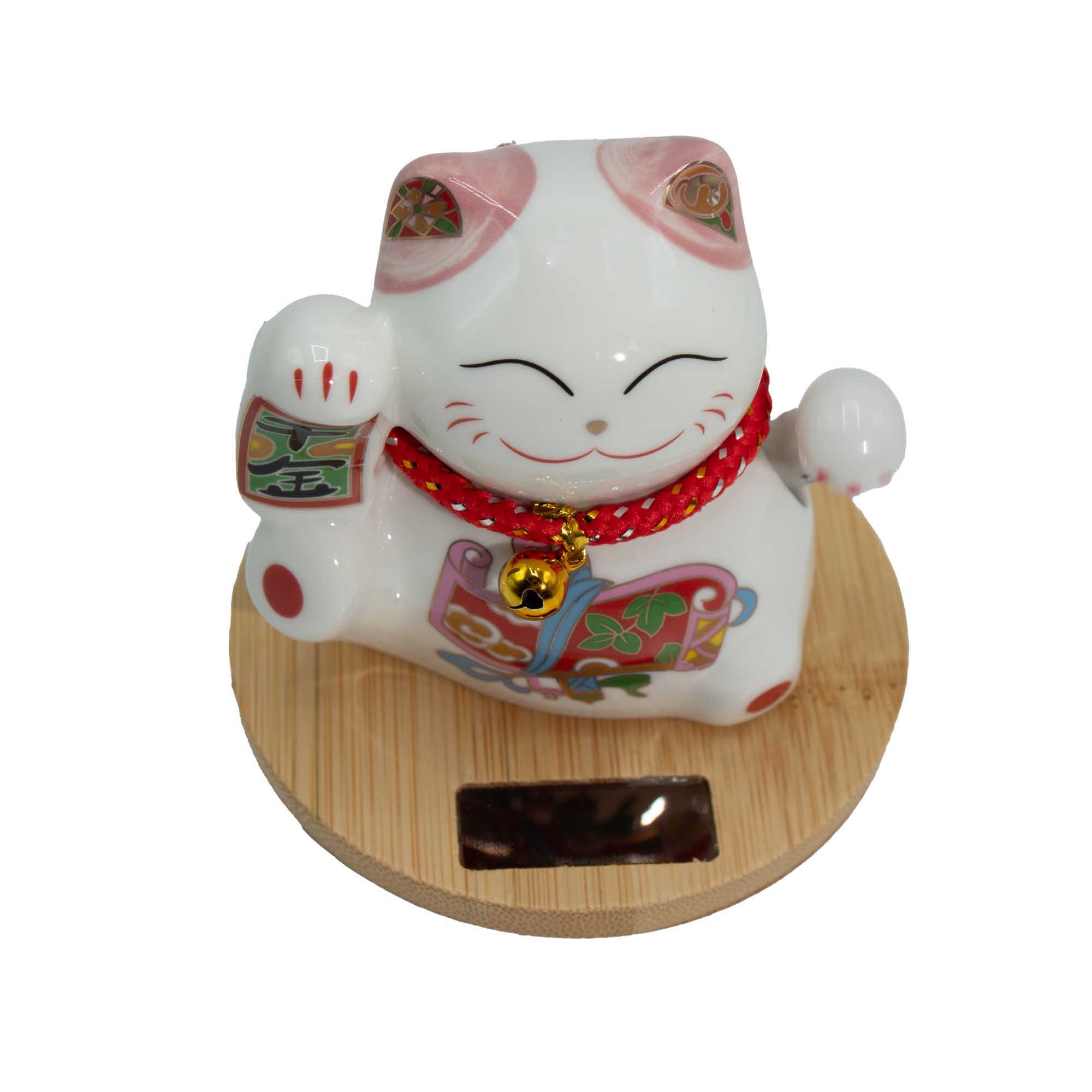 Bring a sense of joy and emotional balance to your giftware range with this soft Pink Solar Maneki-neko. This model stands out by pairing a delicate, inviting color palette with a warm wood-effect base, creating a decorative piece that feels both traditional and "at home" in modern, cosy interiors.