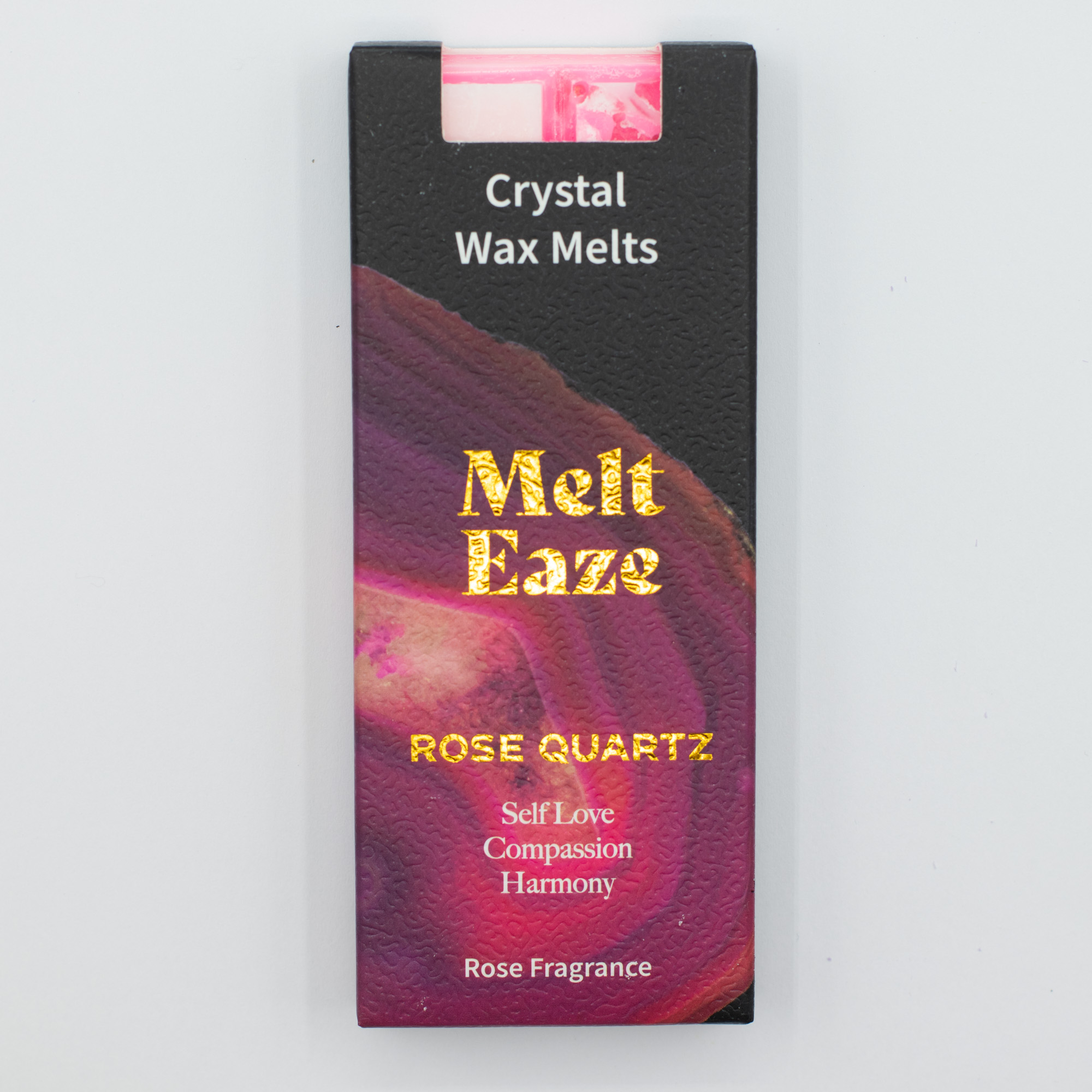 These gemstone-infused wax melt bars create a deeply soothing atmosphere, blending the timeless, soft scent of Rose with the physical beauty of natural crystals. As the wax slowly liquefies, real Rose Quartz chips — the stone of self-love, compassion, and harmony — emerge and settle at the base of the burner. This unique transition from a fragrant home accessory to a lasting gemstone collection provides customers with a memorable "double" experience that encourages repeat sales.