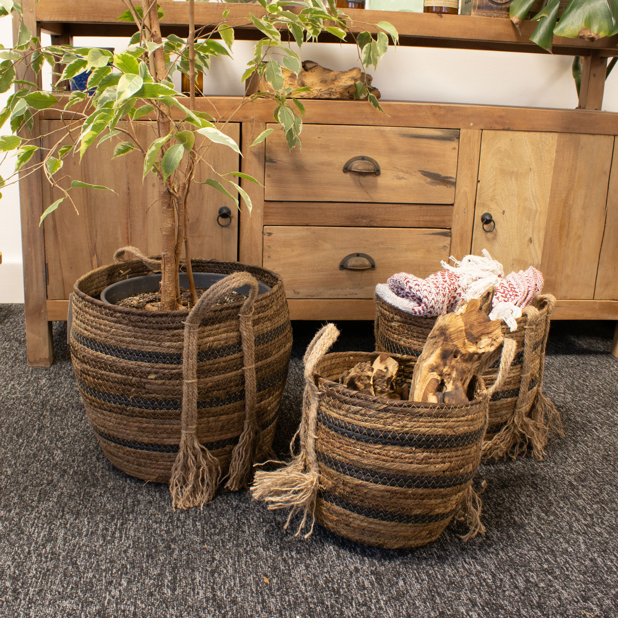 For retailers, these baskets offer excellent display versatility and strong visual presence across home décor, lifestyle, and giftware collections. Ideal for merchandising textiles, storage accessories, seasonal displays, or plant arrangements, the graduated sizing allows flexible in-store presentation while the nesting design keeps stockroom storage efficient. Add them to your next order to introduce a natural, high-impact display solution that customers immediately notice.