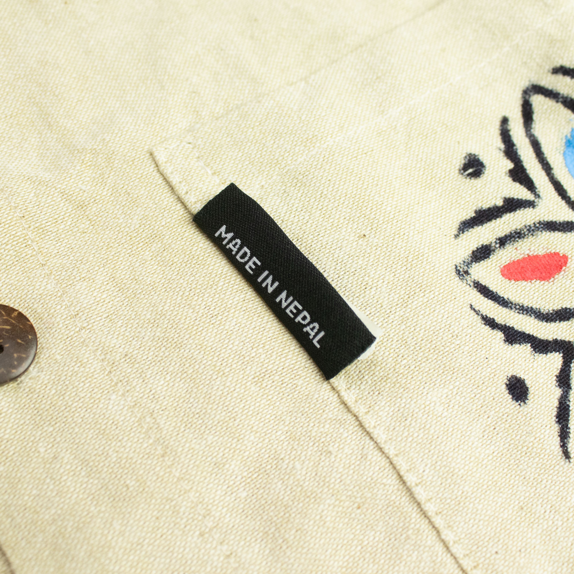 Made from breathable cotton, this shirt is designed for comfort and versatility, making it a reliable choice for year-round retail. The clean collarless cut keeps the look timeless, while the hand-painted pocket motif adds a small but eye-catching detail that gives each piece personality without overpowering the design. It’s the balance of simplicity and craftsmanship that makes this style stand out on the rail.