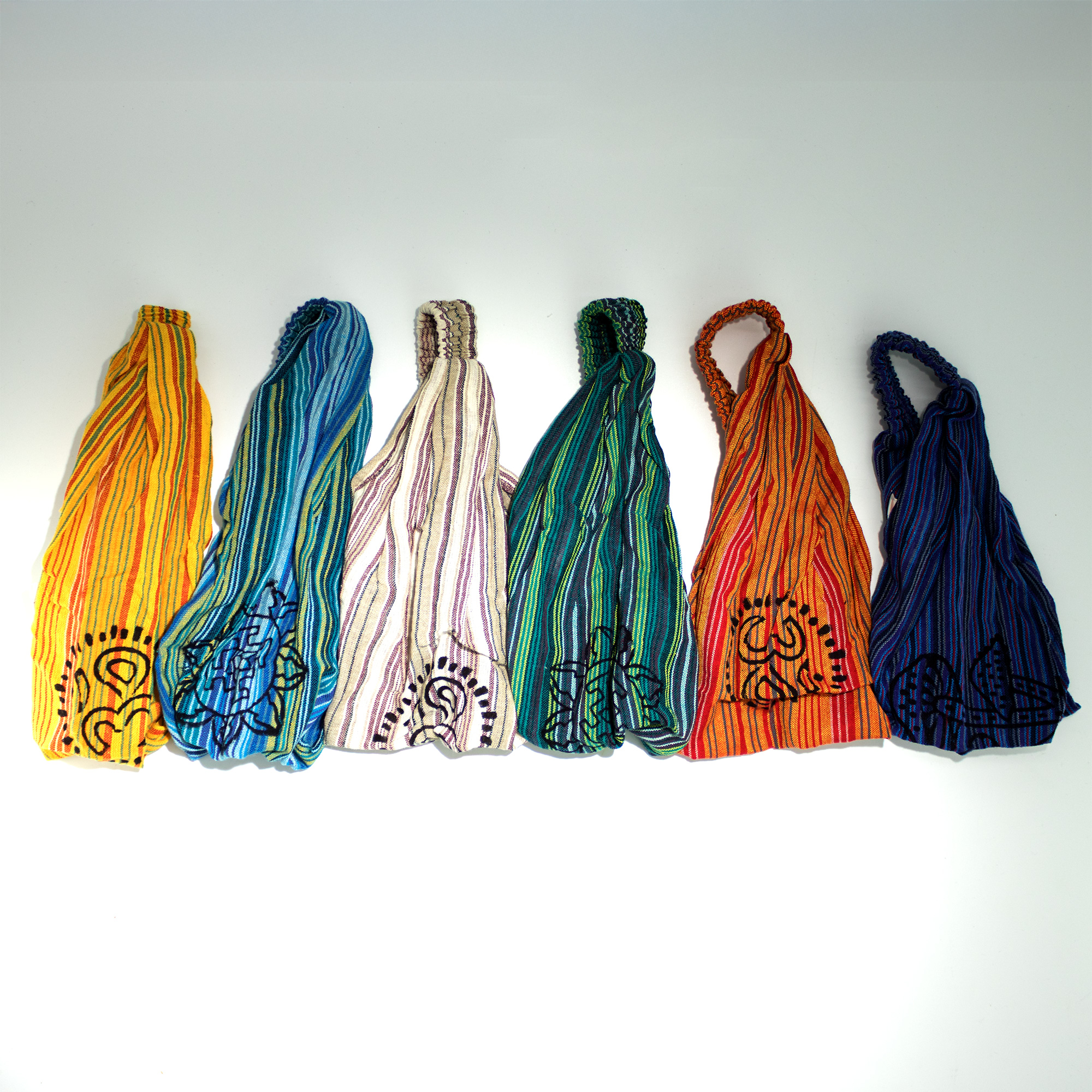 A laid-back, boho headband with a splash of personality. These striped Nomad Sari headbands feature traditional block-printed symbols on the front, adding a subtle spiritual touch to an easy, everyday accessory.
