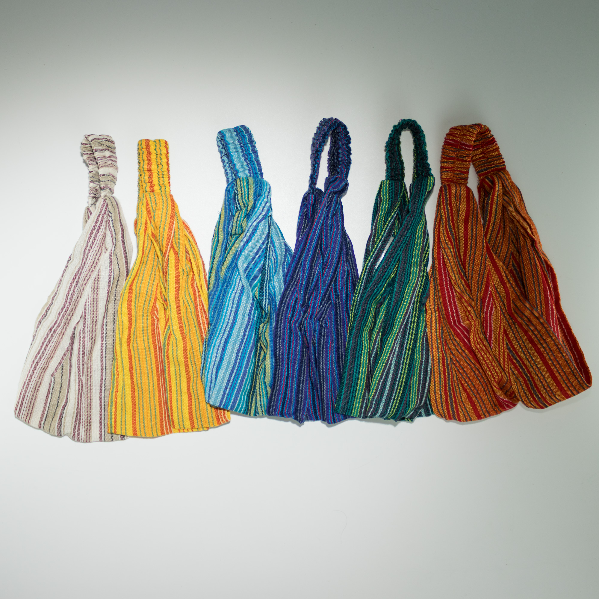 Handmade in Nepal, this 6-piece set includes one headband in each colourway, giving a full mix of vibrant striped designs. The free-size fit works for most and can be worn wide for full coverage or folded for a slimmer look.