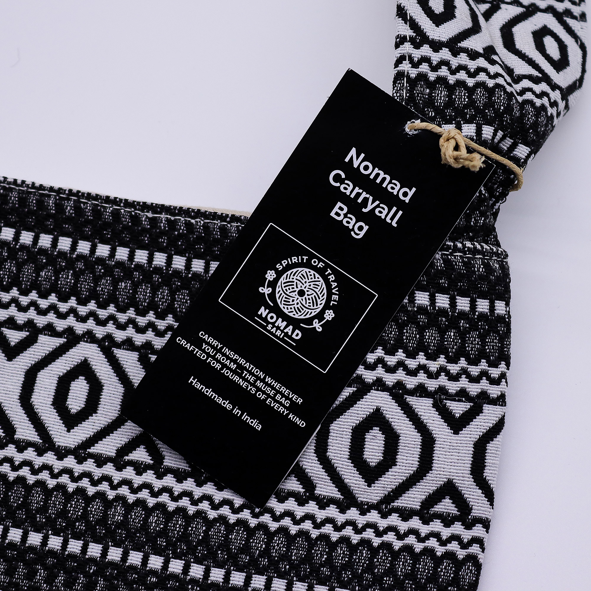 The Urban Caravan Nomad Carryall is a perfect balance of function and craft. With its monochrome jacquard weave and geometric pattern, it brings a touch of artisan detail to everyday wear.