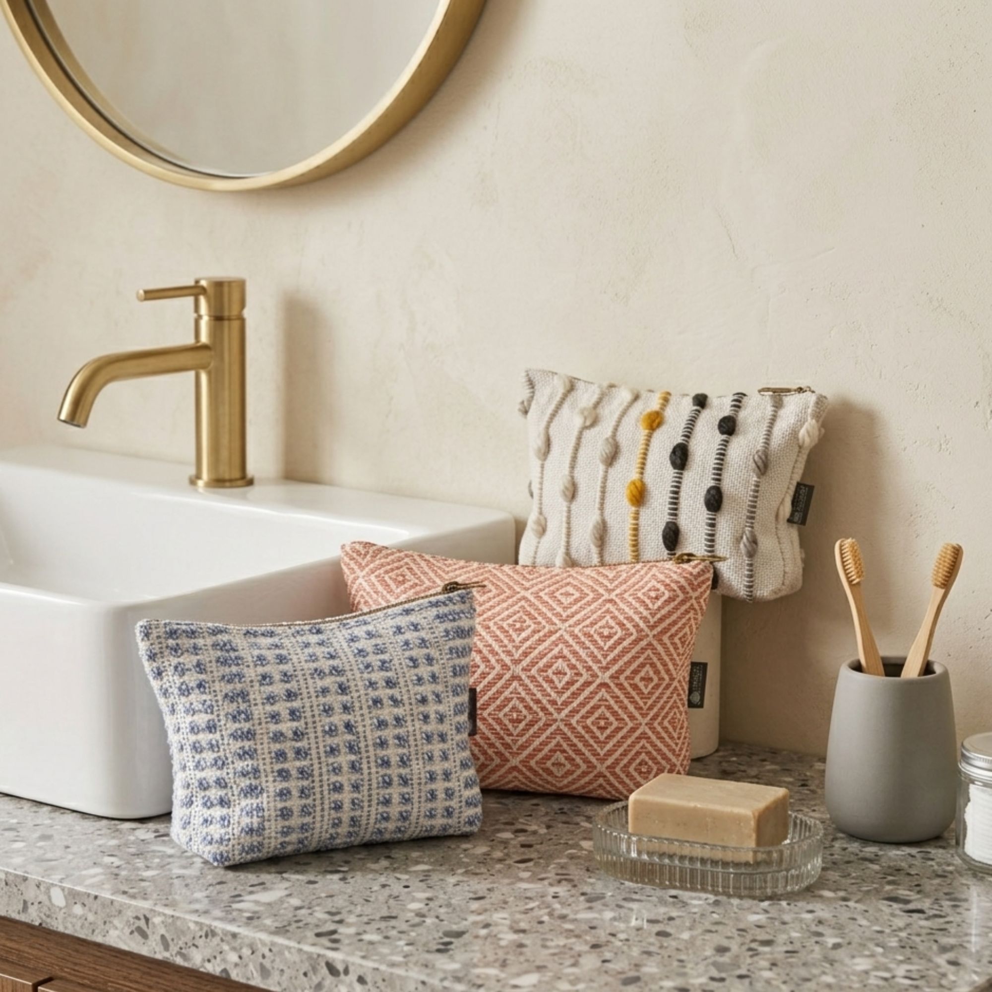 The "Rose Lattice" is a fantastic addition to your lifestyle or beauty section. Its soft colour story and artisanal texture appeal to customers looking for a more refined, feminine aesthetic without sacrificing durability. It’s the perfect size for makeup brushes, skincare routines, or even as a stylish organizer inside a larger tote. Because it carries a unique, handcrafted story, it serves as an excellent gift item that feels personal and high-value. Stocking this design allows you to offer your customers a piece of Indian textile heritage that fits perfectly into a modern, curated travel kit.
