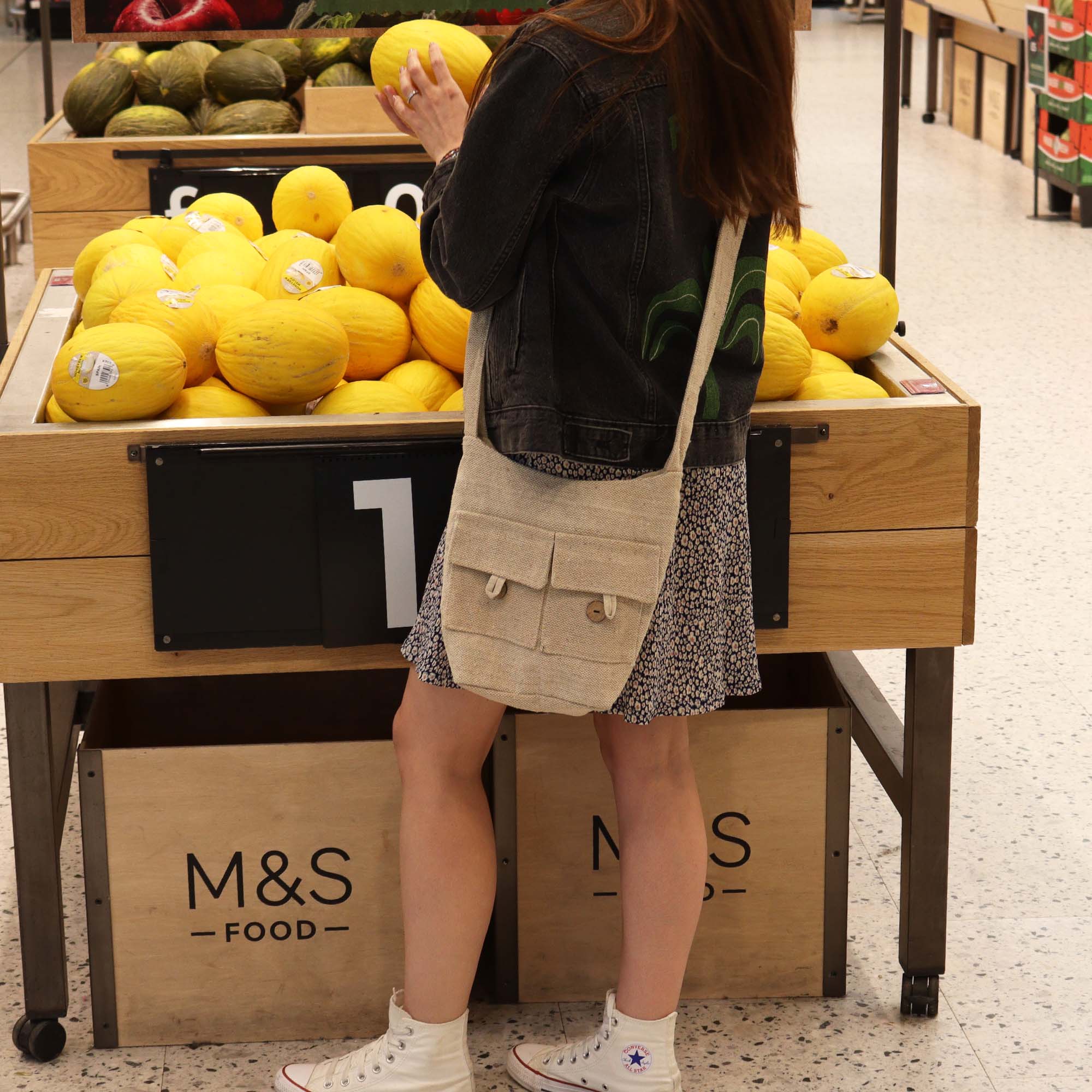 Crafted from high-quality cotton, this bag offers both style and functionality. The classic natural colour complements a variety of outfits, making it an easy sell. Two conveniently placed pockets keep essentials organized, while the long strap allows for comfortable crossbody or over-the-shoulder carrying.