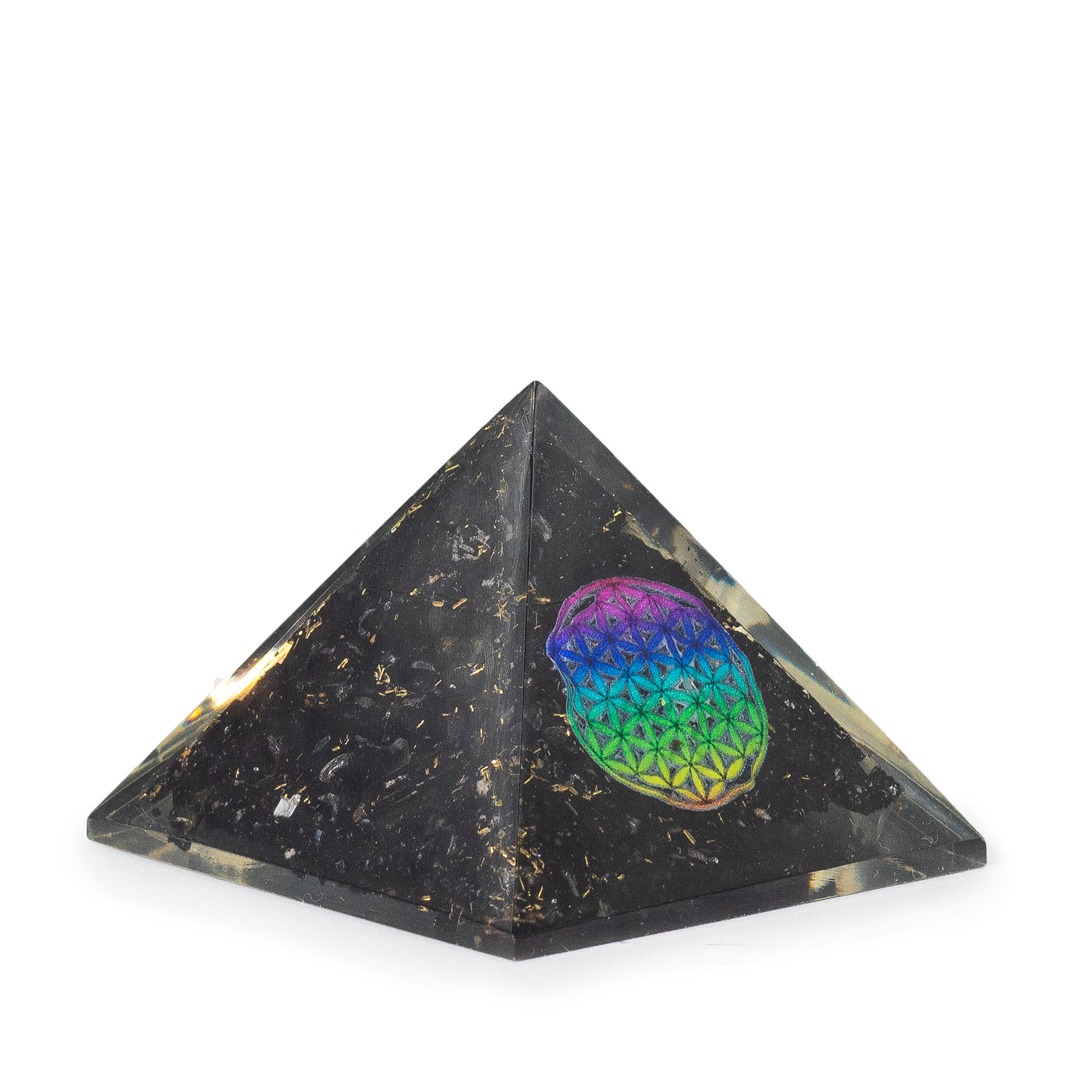 This beautiful Pyramid is filled with healing crystal chip stones with a Om Chakra Design.