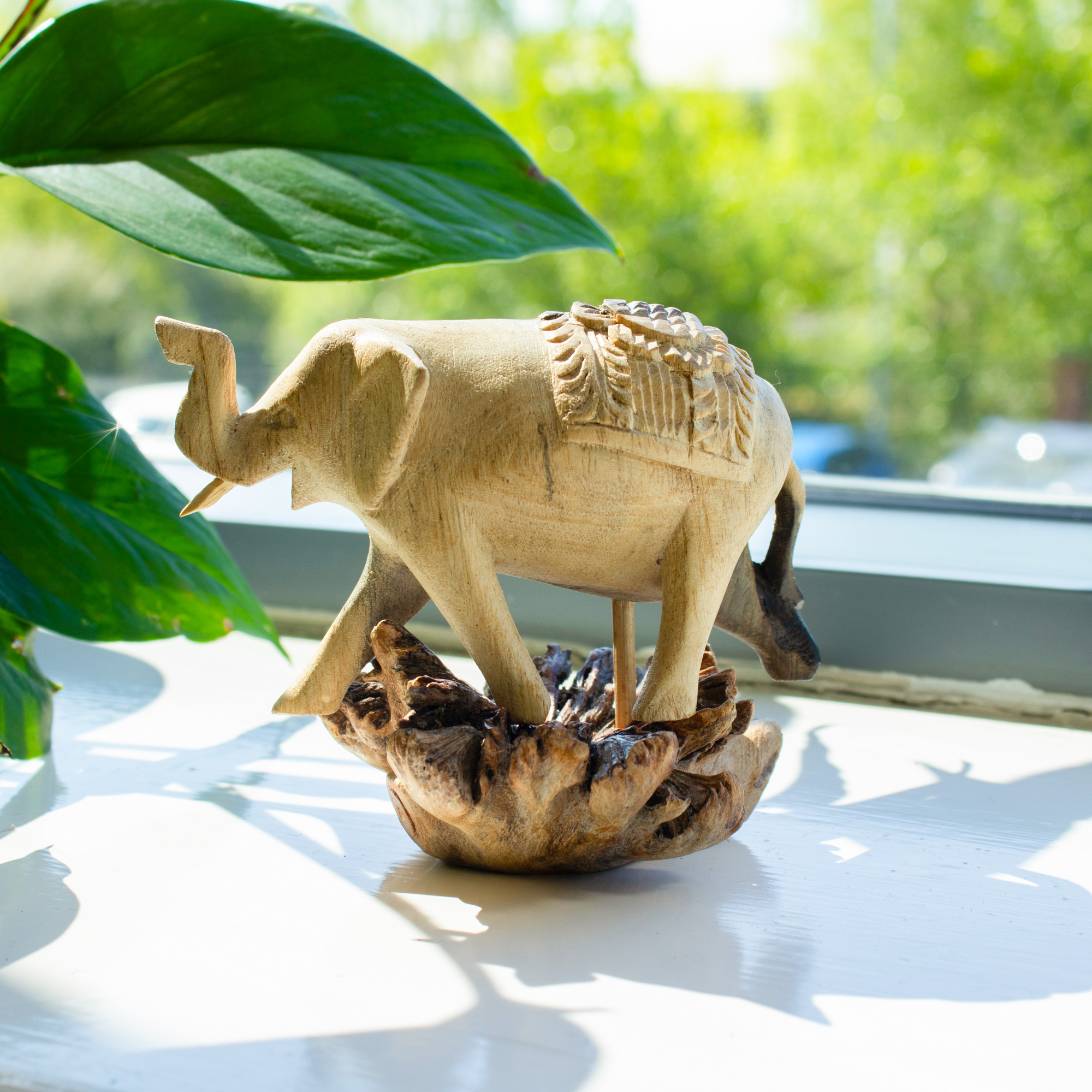 For retailers, the elephant is a symbolic powerhouse that fits beautifully into wildlife themes, travel-inspired displays, or rustic décor. The carved saddle detail adds an extra touch of quality, showing customers that time was taken rather than rushed. These carvings serve as perfect "discovery points" on a shelf; position them where customers can appreciate the detail, as the tactile nature of the parasite wood base often encourages people to pause and connect with the piece.