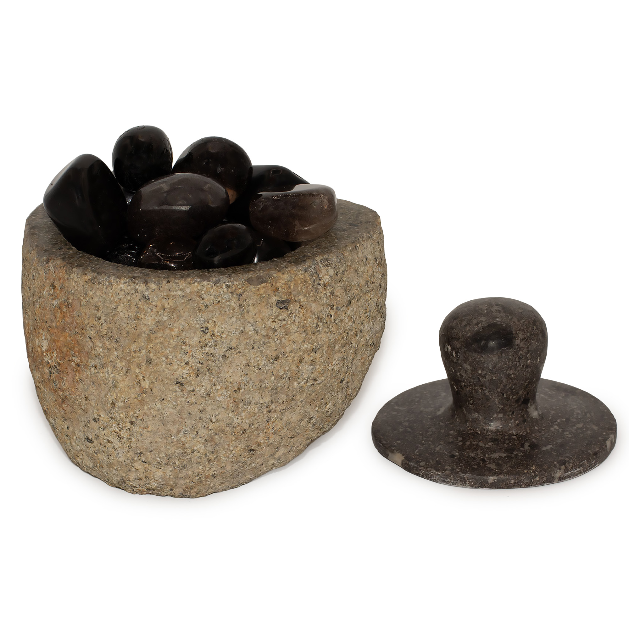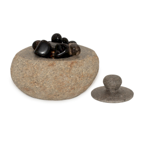 Filled with dark grounding gemstones, it works as a simple focus piece for calm, reflection, or everyday balance. Perfect for desks, bedside tables, or shelves, it brings a subtle sense of stability without feeling overtly spiritual.