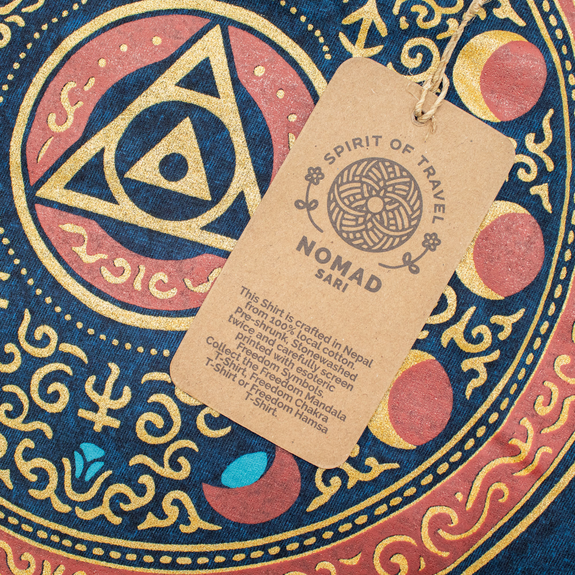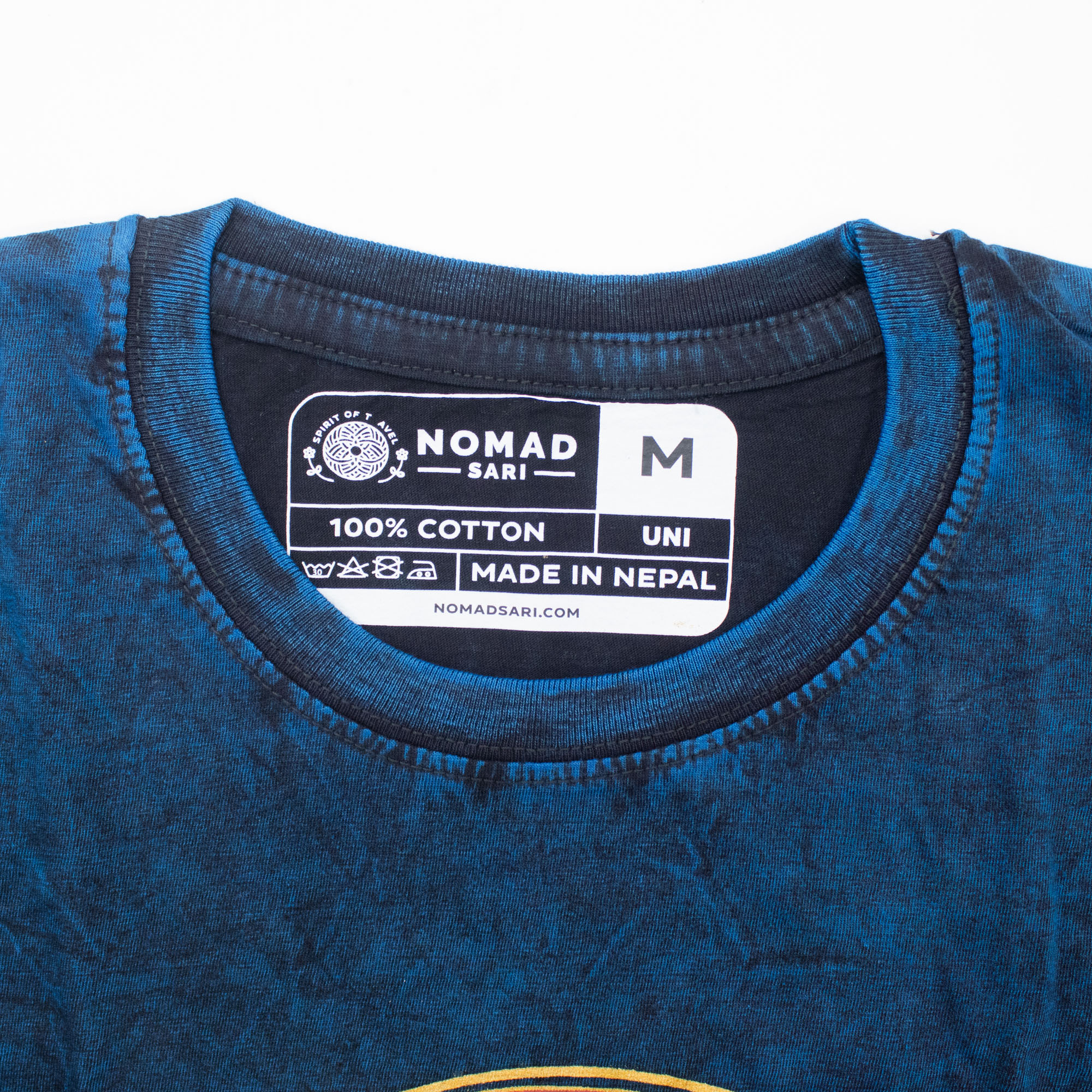 Designed for the road, this Medium-sized tee offers a balanced, comfortable fit that appeals to a wide demographic. Each garment includes the signature Nomad Sari hem tag, ensuring your customers receive an authentic, high-quality product. This T-shirt is an ideal choice for lifestyle shops and festival vendors looking to offer unique, symbolic apparel that stands out in any display.