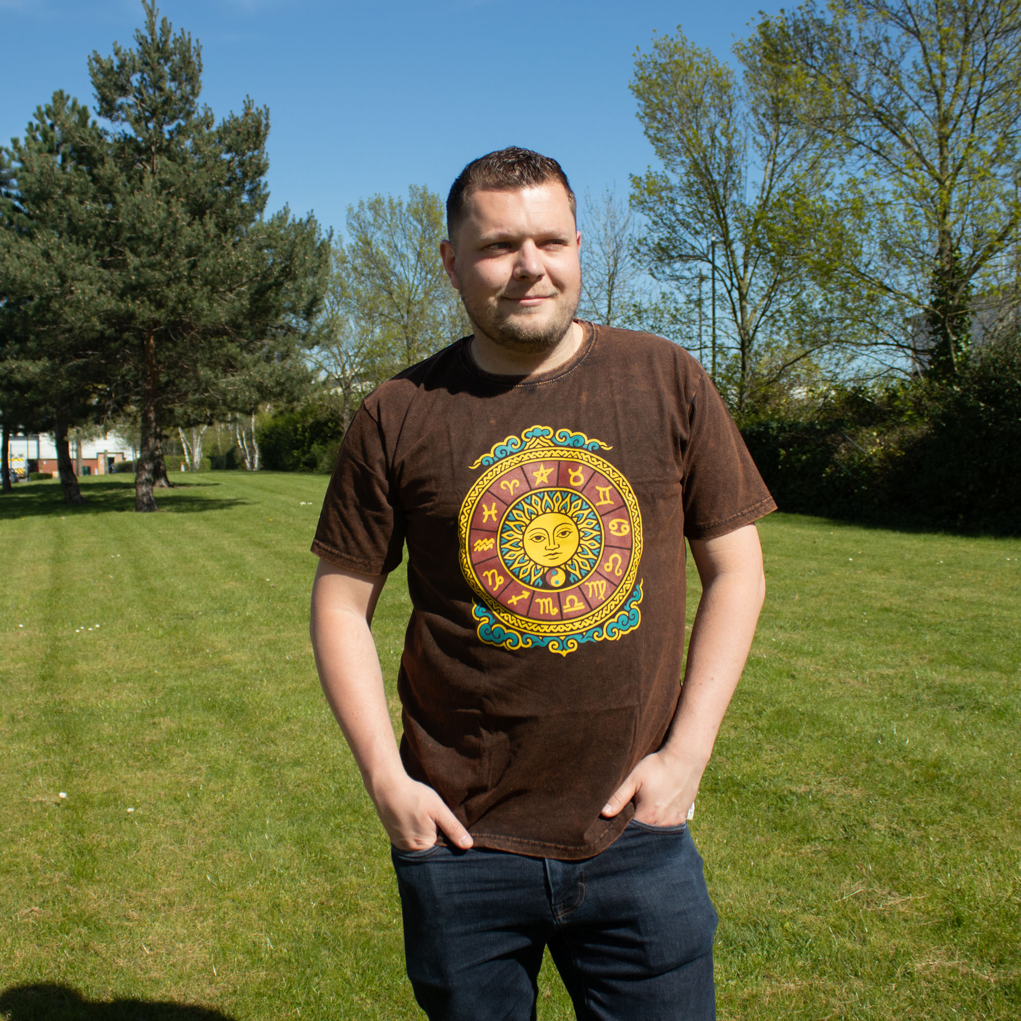 The XLarge Sun & Zodiac T-shirt is an essential piece for boutiques and lifestyle retailers targeting the spiritual and adventure-seeking demographic. The earthy brown cotton is treated with a specialised stone-wash process to achieve a unique, marbled finish that feels exceptionally soft and lived-in.
