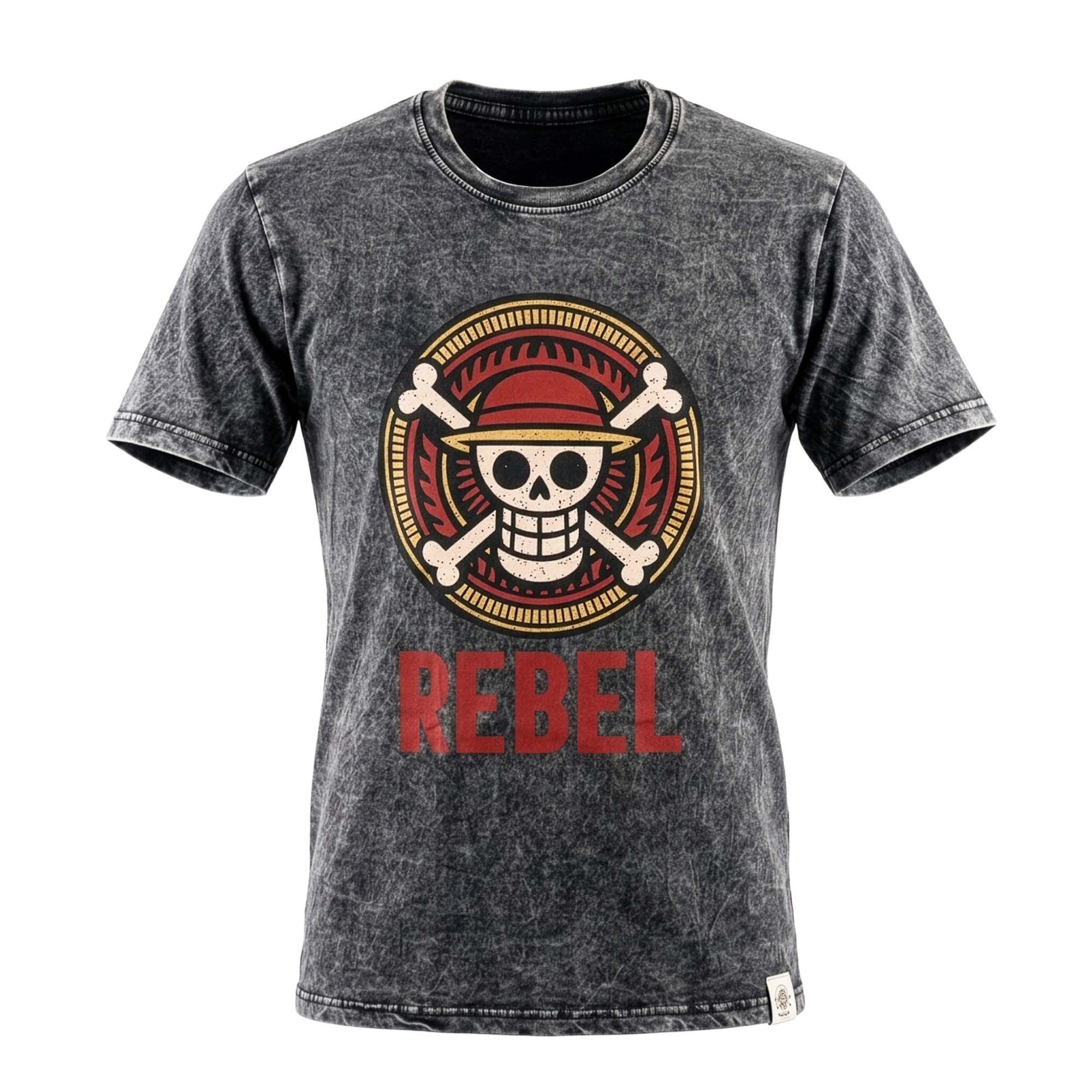 Ignite your retail collection with the Nomad Sari "Rebel" T-shirt in Small. This charcoal stone-washed tee features a bold emblem with a distinctive red "REBEL" print. Designed for the spirited adventurer, it combines a premium vintage texture with an edgy, counter-culture aesthetic that ensures immediate shelf appeal for your boutique.