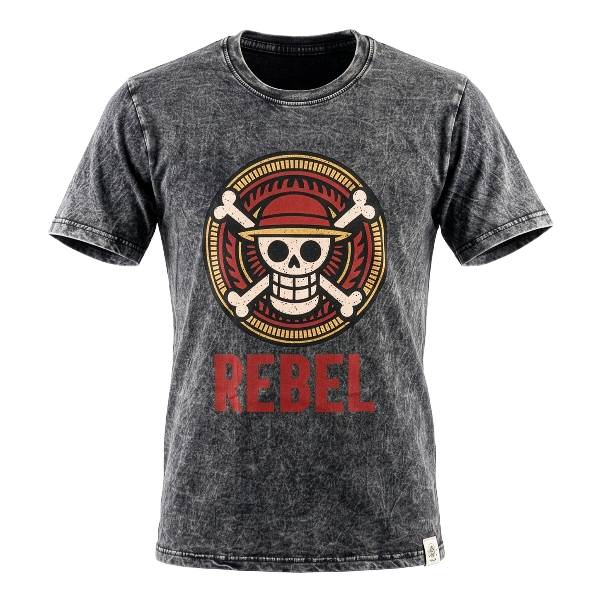Equip your shop with the spirit of defiance with the Nomad Sari "Rebel" T-shirt in Medium. Featuring a bold emblem and a crimson "REBEL" print, this charcoal stone-washed tee merges an edgy, counter-culture vibe with a premium vintage feel. It is a high-impact retail piece designed for modern explorers who value bold symbolism and rugged durability.