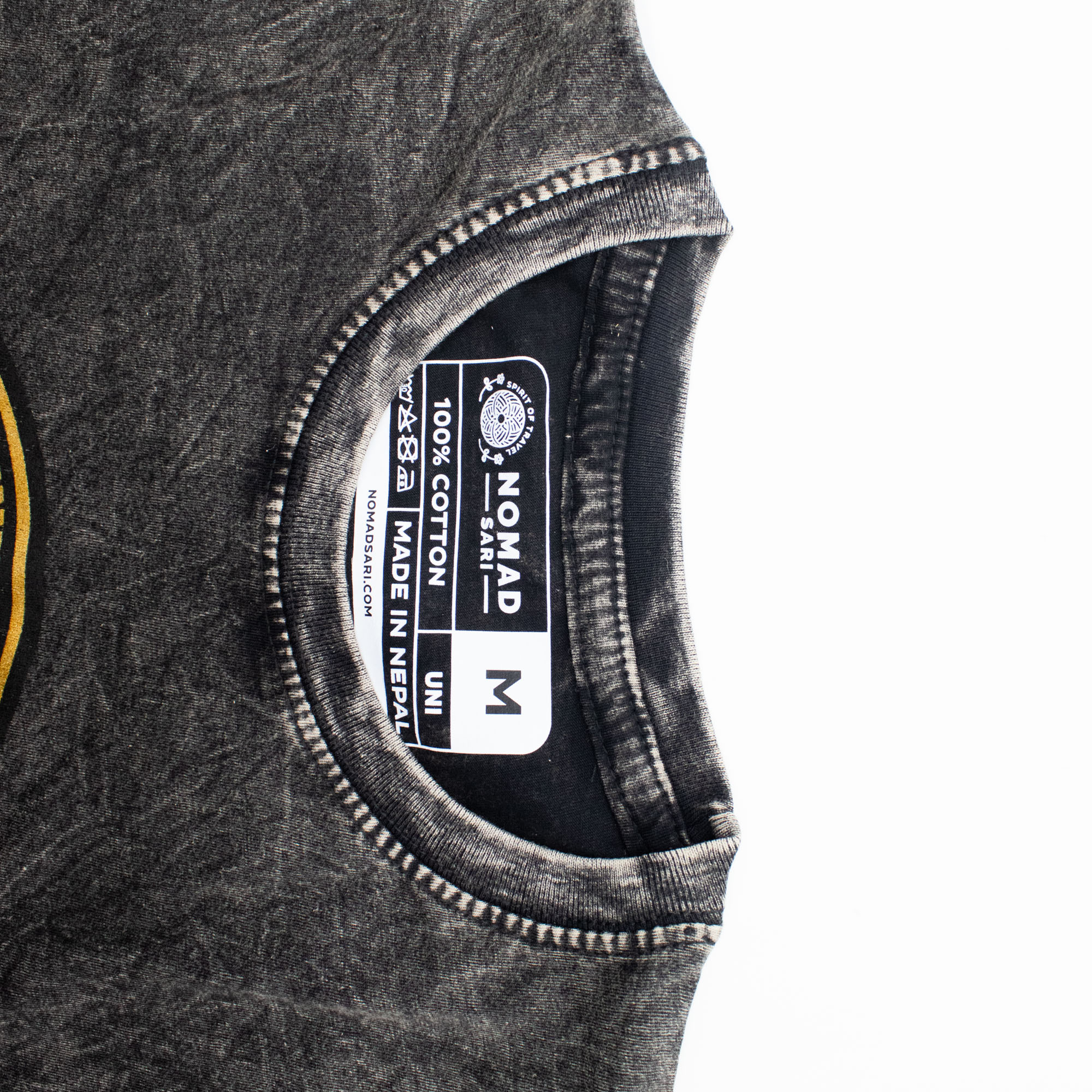 The Nomad Sari "Rebel" T-shirt in Medium is a versatile staple for retailers catering to the adventure and streetwear markets. The charcoal fabric undergoes a specialised stone-wash treatment, resulting in a rich, marbled texture that is exceptionally soft to the touch.
