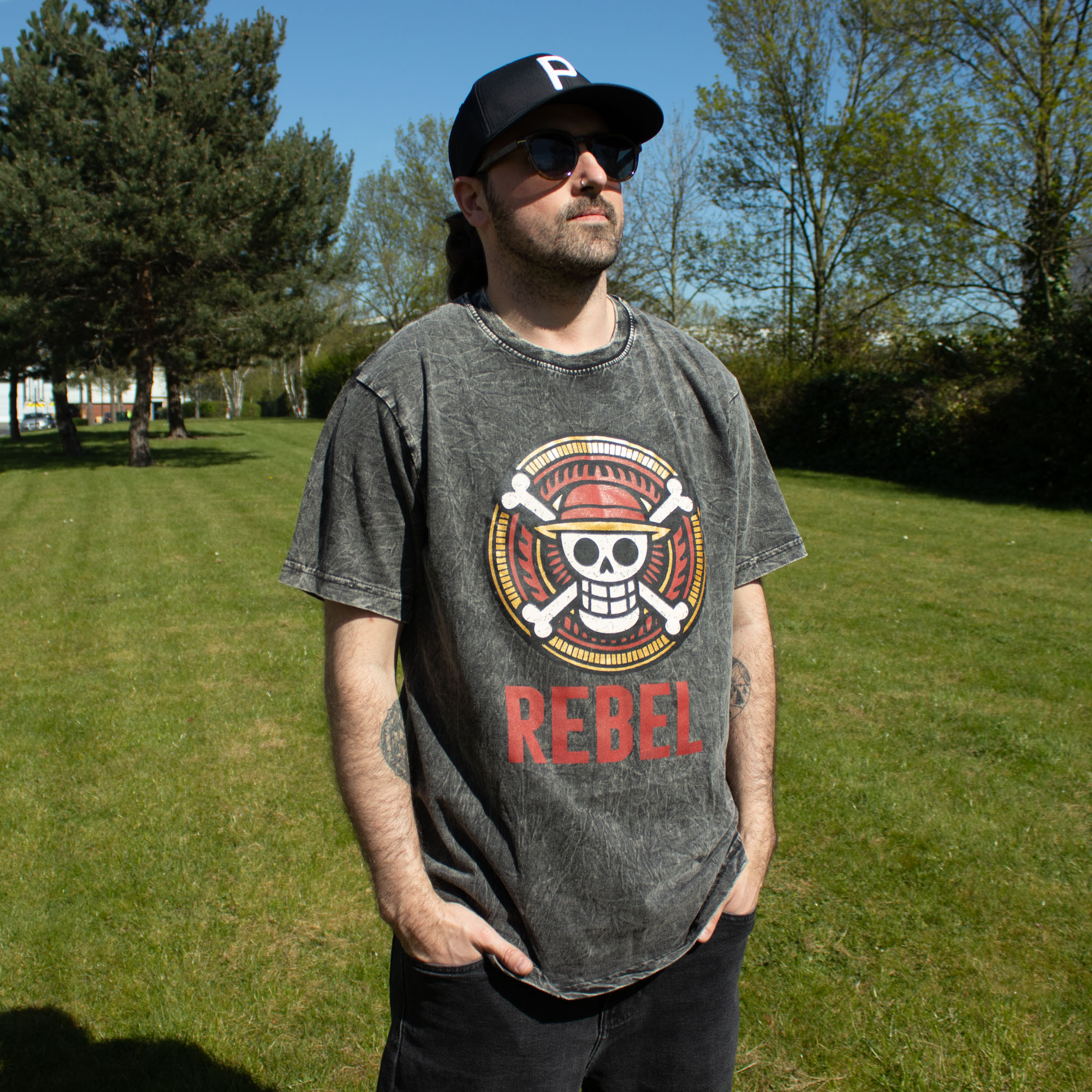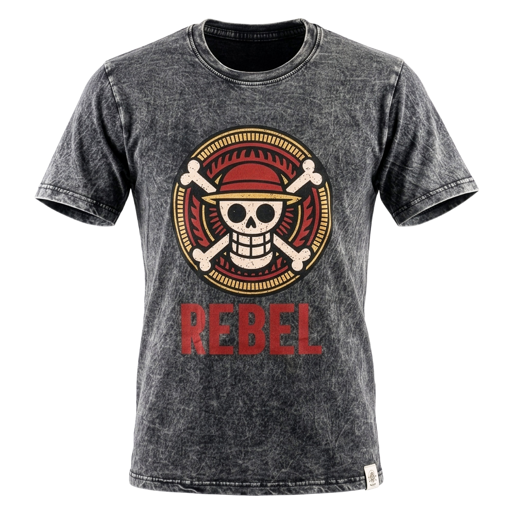 Capture the spirit of the high seas with the Nomad Sari "Rebel" T-shirt in Large. This charcoal stone-washed tee features a striking emblem and a bold red "REBEL" print, merging a rugged vintage texture with a defiant, counter-culture aesthetic. It is a premium essential, built for modern explorers who seek both symbolic style and long-lasting comfort.