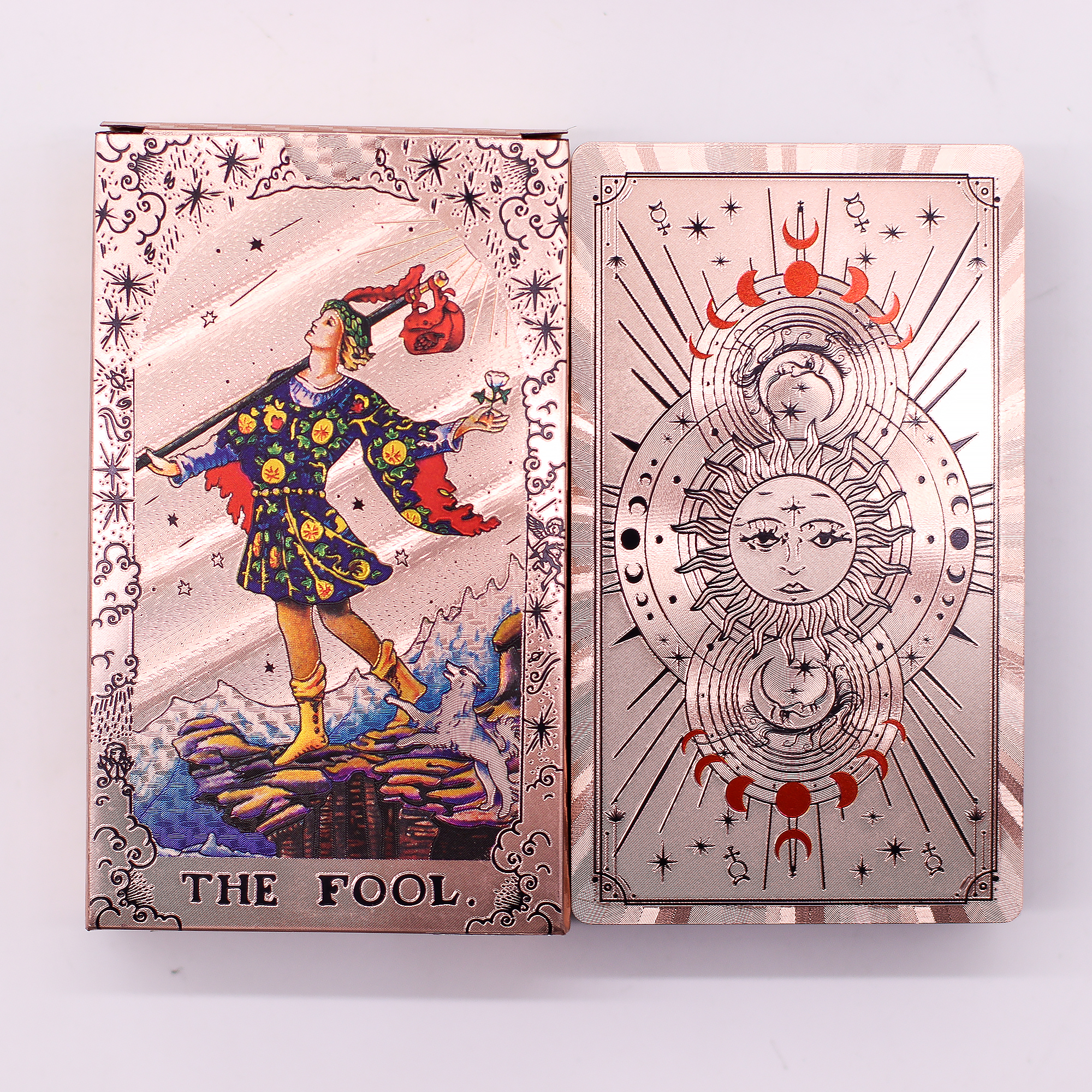 The Rose Gold Foil Tarot Card Set – Moon Phase brings shimmering depth to readings with its radiant foil design. Each card reflects moonlit tones, adding a celestial touch to the art of tarot.