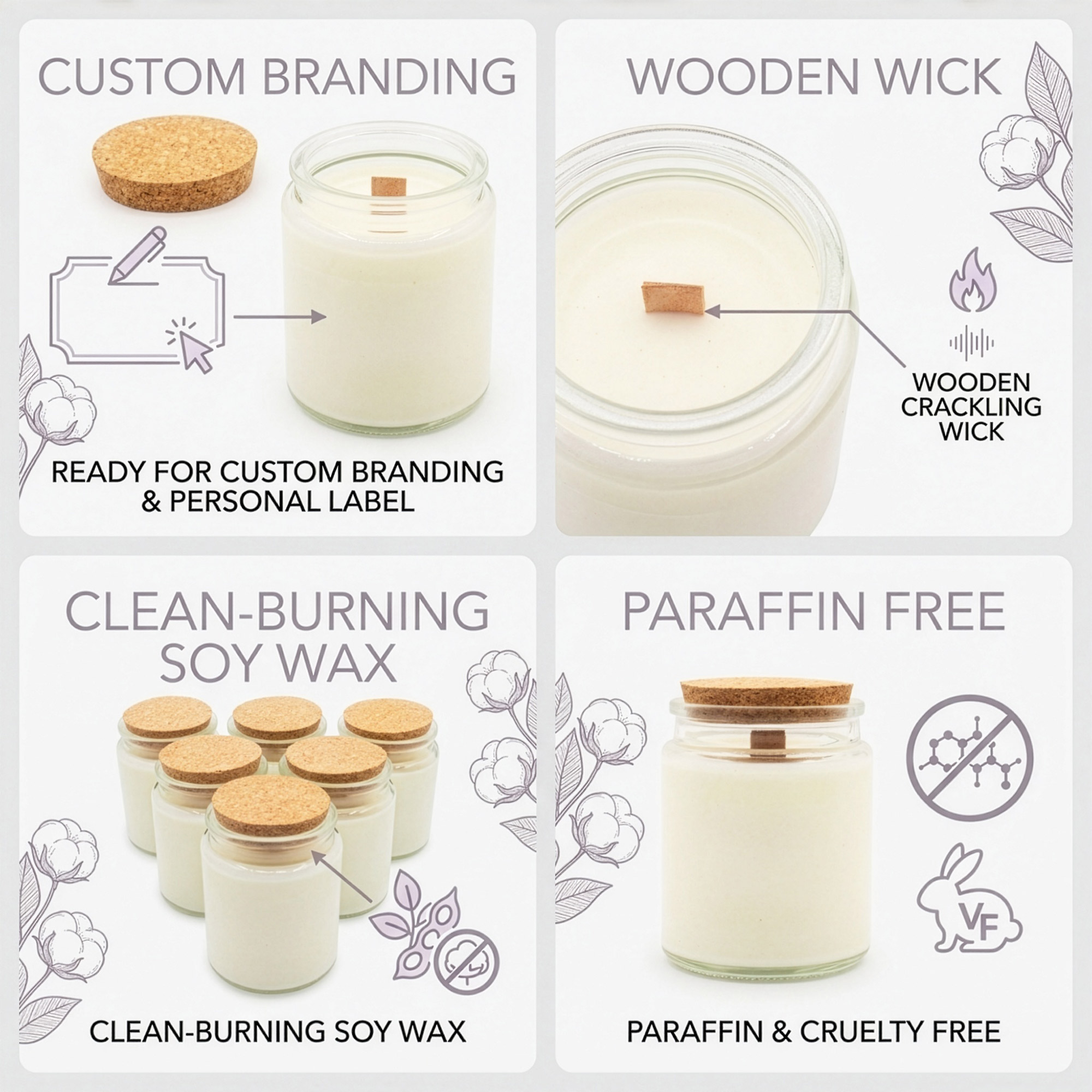 Soywax, Woodwick, Glass Jar, Cork, Paper