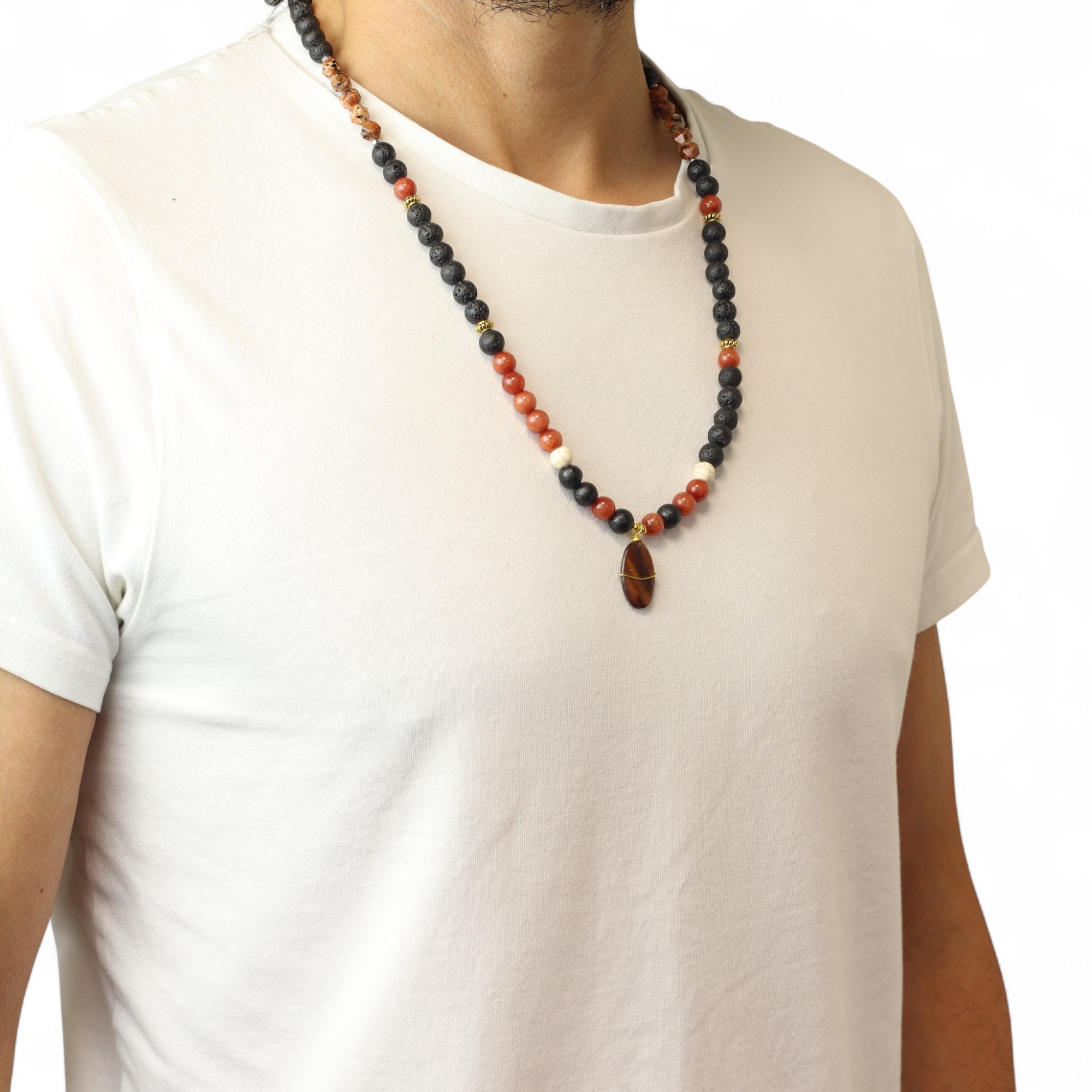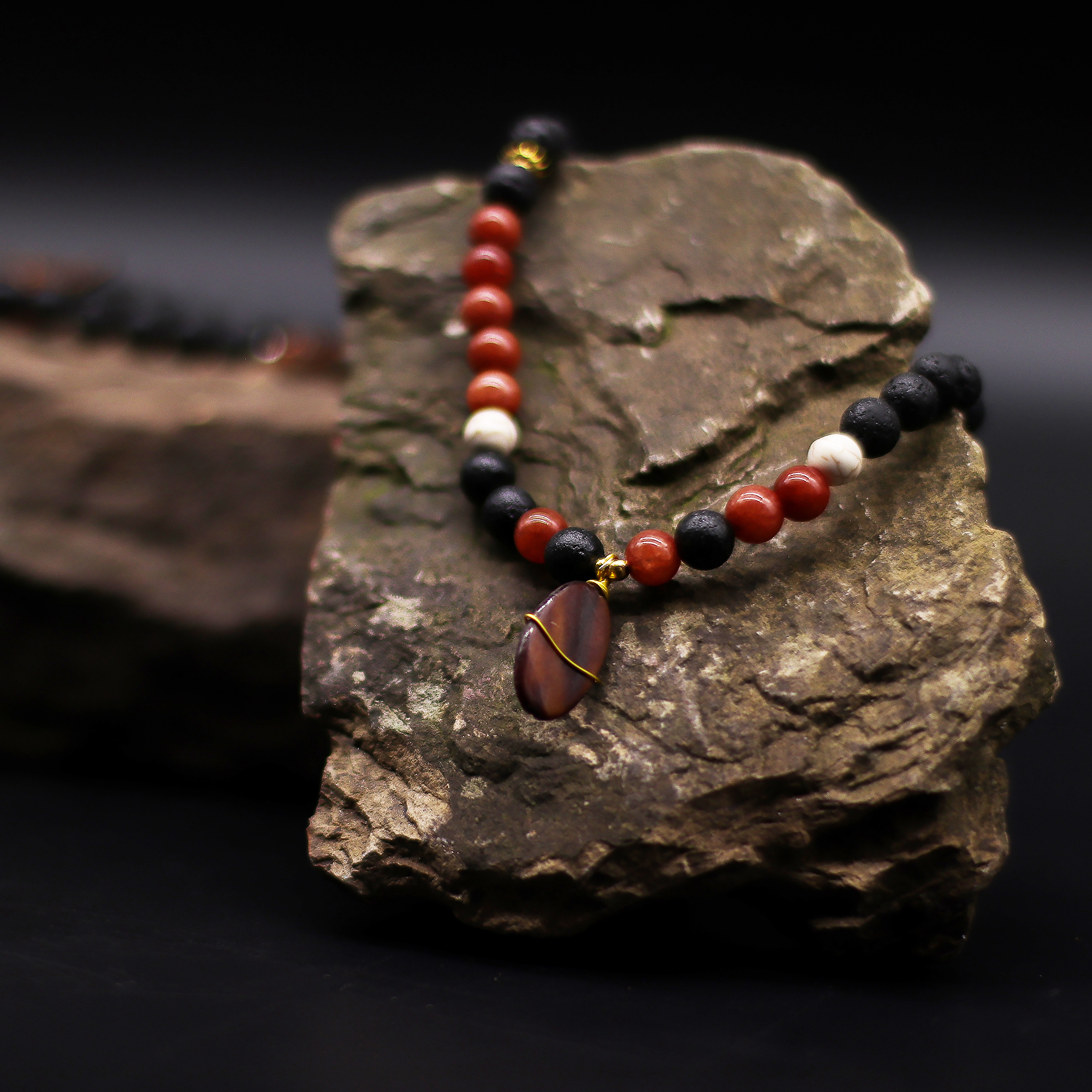 Invite strength and balance into any retail collection with this meaningful piece. Handmade in Indonesia, this necklace combines grounding lava stone beads with accent gemstones to symbolise protection and inner resilience. Its design speaks to both spiritual seekers and everyday wearers: subtle yet powerful.