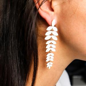 Each pair showcases delicate craftsmanship, blending polished steel with colourful glass accents in shades of Teal Green, Jet Black, Rose Quartz, Lavender, Royal Blue, and Pearl. The designs include Long Drop, Loop, Flowers, and Angel Wings, offering plenty of variety to suit different tastes.