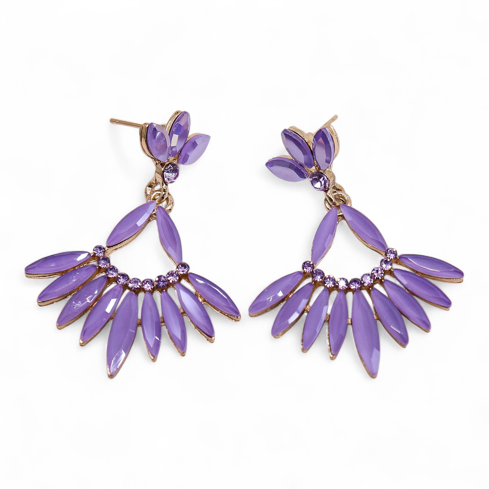 Add soothing beauty to your jewellery range with these Long Drop Earrings featuring lavender glass accents that shimmer like twilight waves. Their elongated form evokes flow and fluidity, combining elegance and presence in one wearable piece.