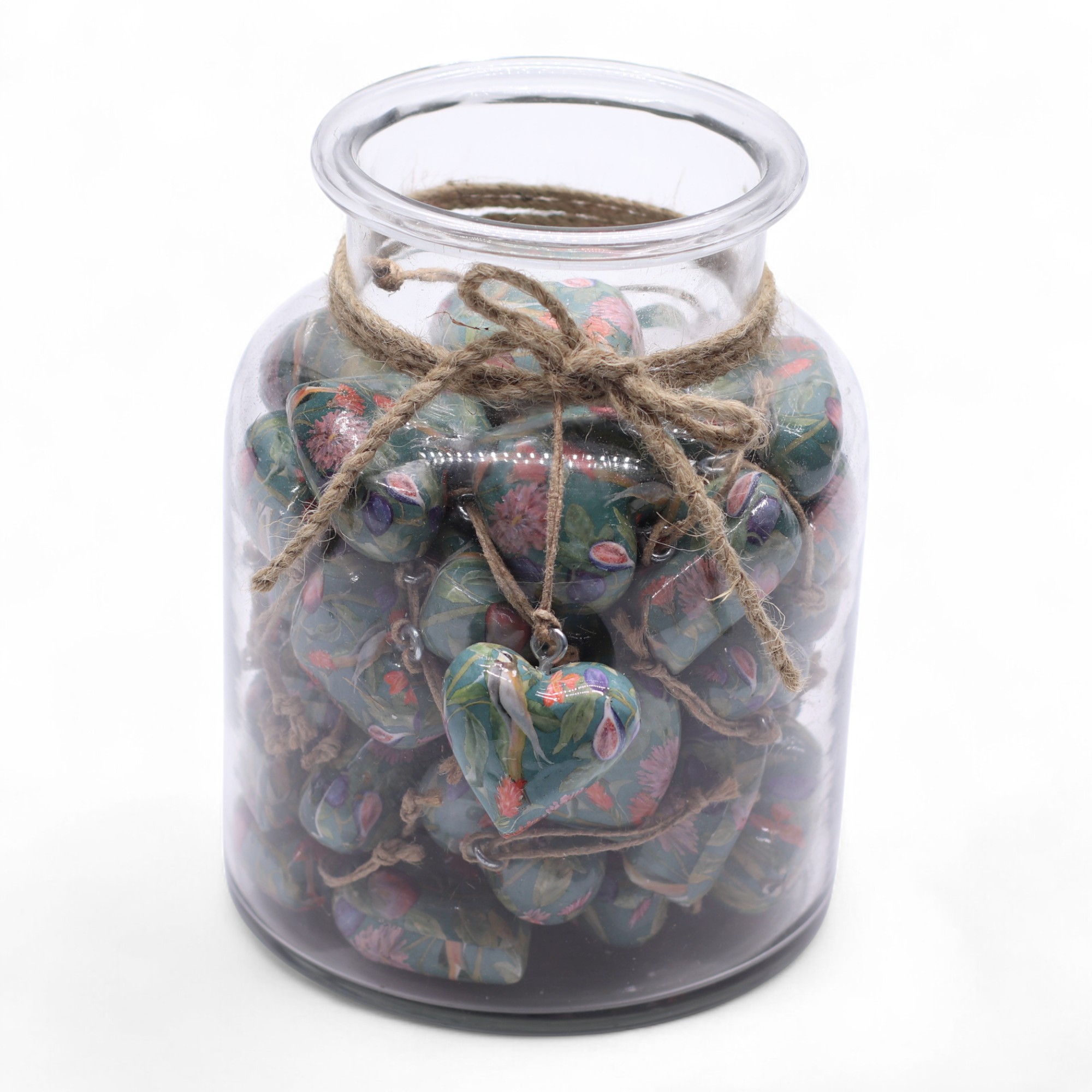 Delight your customers with this charming jar of 50 Large Decor Wood Hearts, each beautifully finished in a vintage pattern. Crafted from wood and coated in glossy enamel, these hearts make perfect gifts, keepsakes, or décor accents.