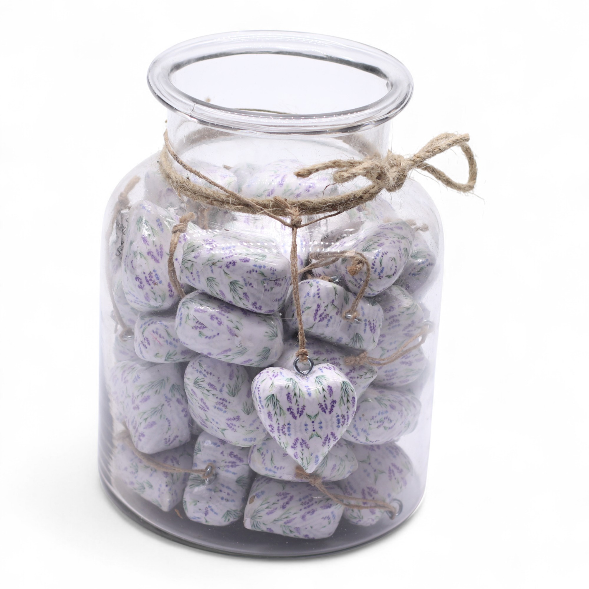 Delight your customers with this charming jar of 50 Large Decor Wood Hearts, each beautifully finished in a vintage pattern. Crafted from wood and coated in glossy enamel, these hearts make perfect gifts, keepsakes, or décor accents.