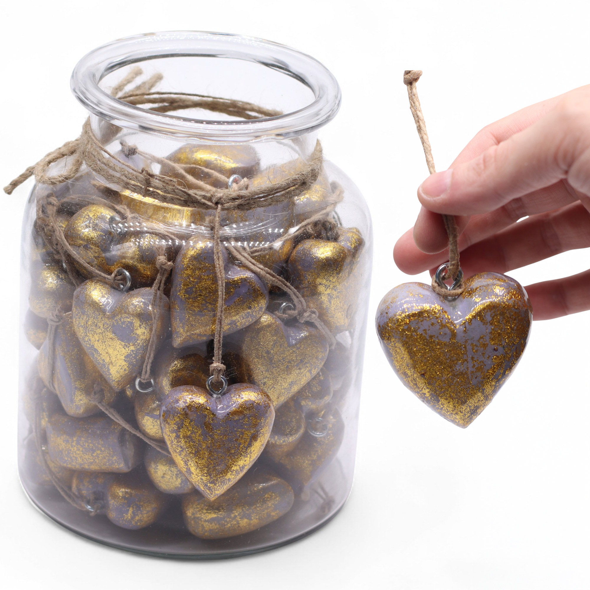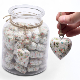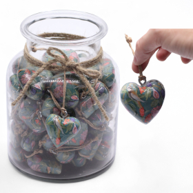 Delight your customers with this charming jar of 50 Large Decor Wood Hearts, each beautifully finished in a vintage pattern. Crafted from wood and coated in glossy enamel, these hearts make perfect gifts, keepsakes, or décor accents.