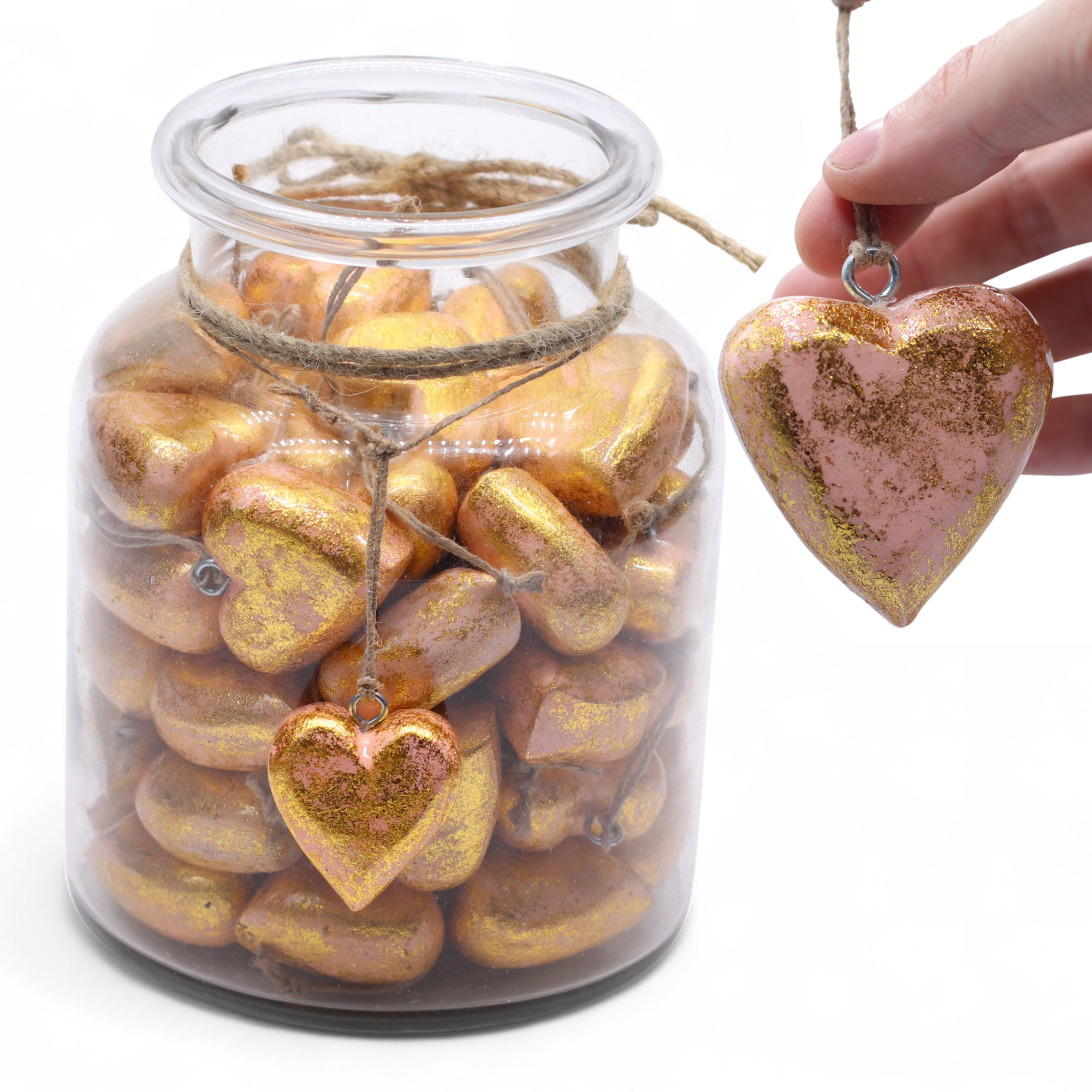 Delight your customers with this charming jar of 50 Large Decor Wood Hearts, each beautifully finished in a vintage pattern. Crafted from wood and coated in glossy enamel, these hearts make perfect gifts, keepsakes, or décor accents.