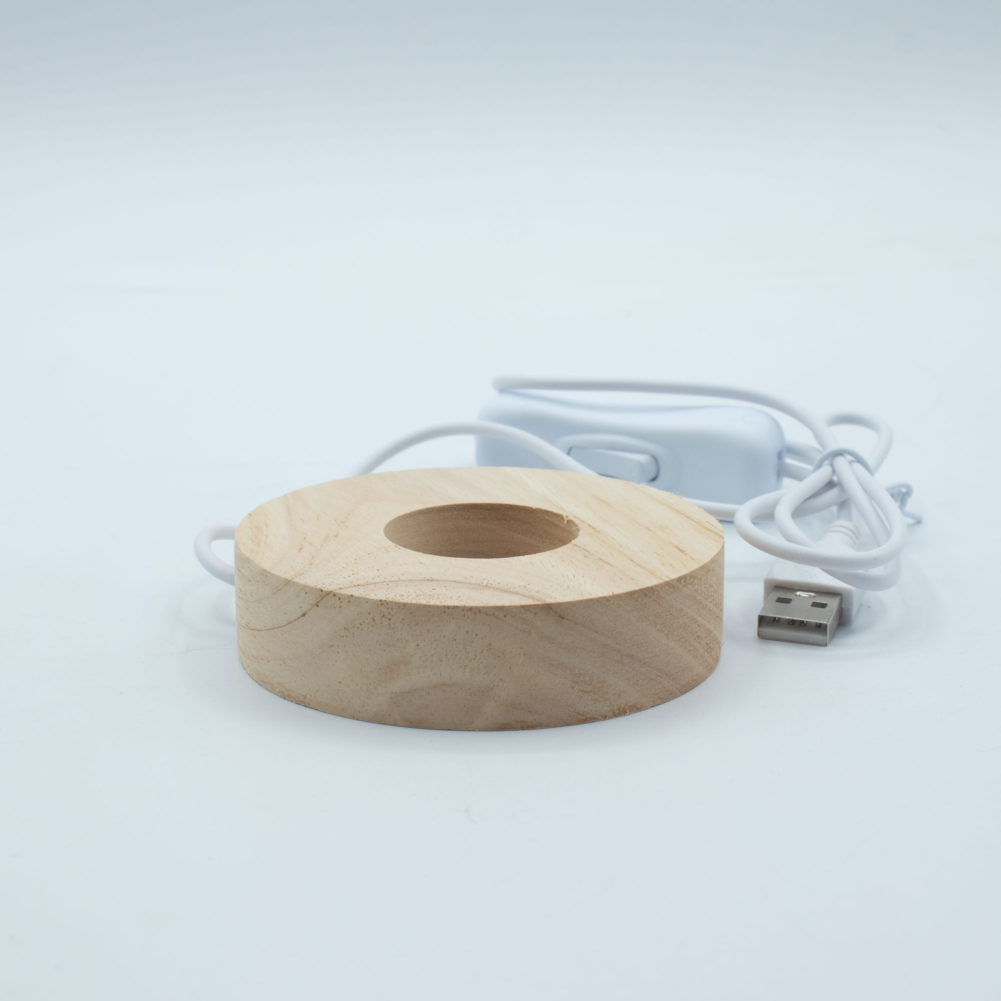 This 8cm round wooden LED stand is a versatile display essential for retailers who want control over how their products are seen. Slightly larger than the 6cm version, it offers a broader light spread, making it ideal for medium-sized crystals, carvings, glass, resin pieces, and decorative objects.