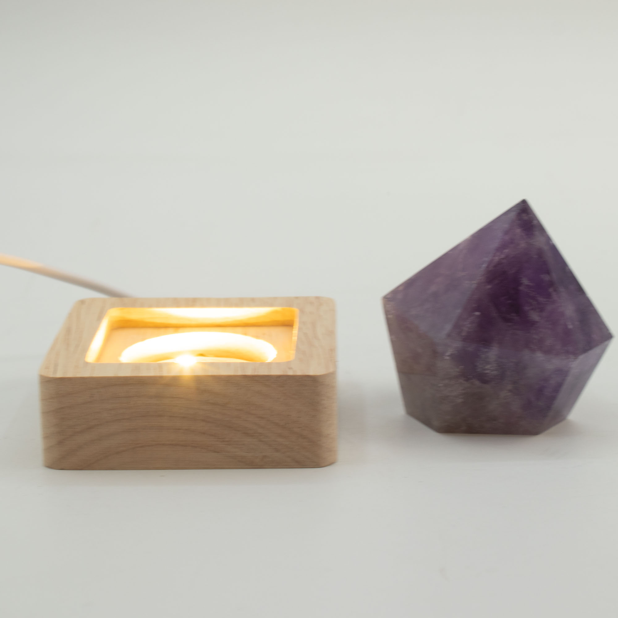 Designed to light items from below, it’s ideal for small to medium crystals, polished stones, glass, resin, and carved decorative pieces. The light lifts colour and internal detail without overpowering the product, helping items look sharper and more considered on display.
